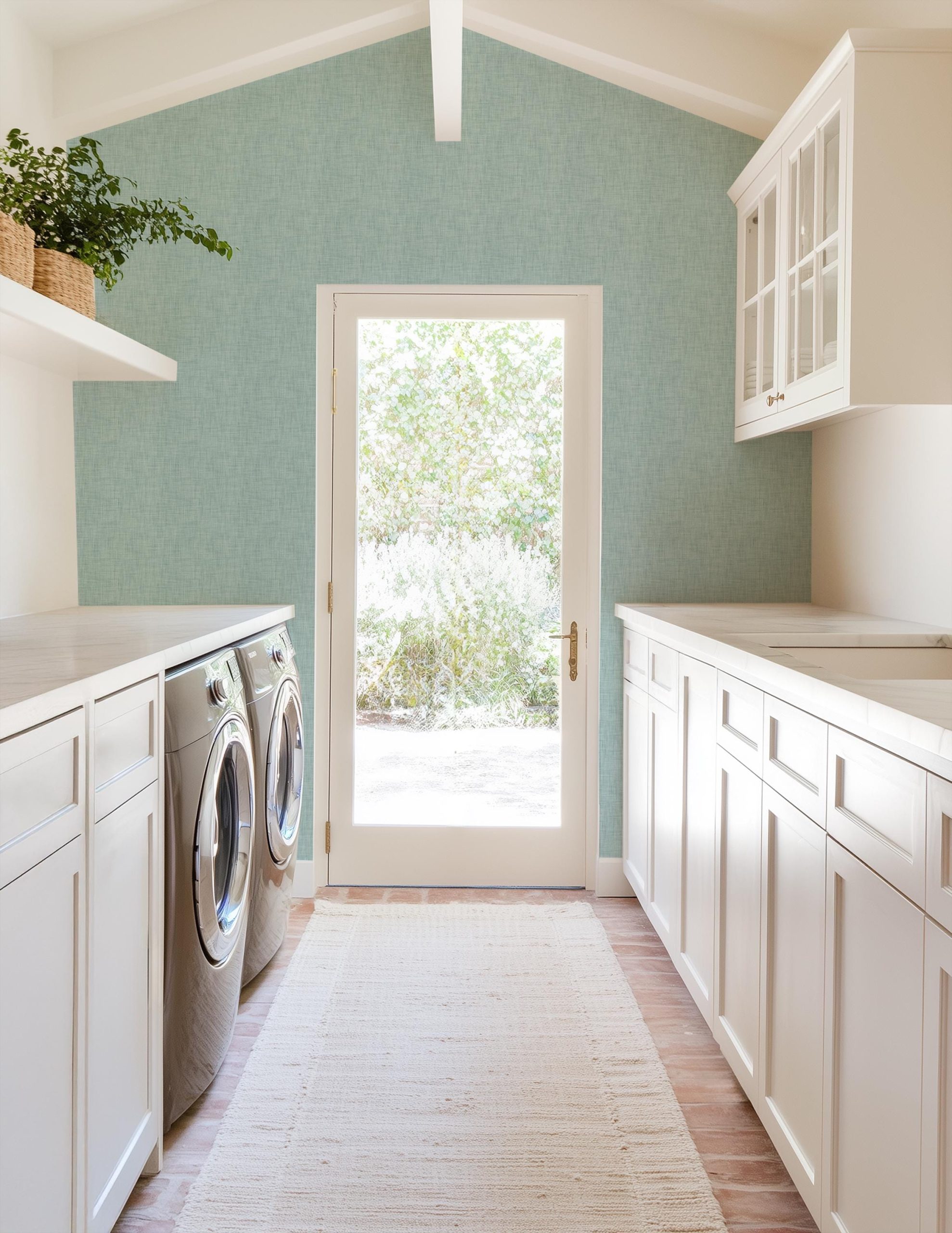 Aqua Linen Pattern Wallpaper, Traditional or Peel and Stick Removable, Home Decor, Versatile, Accent Wall, Neutral