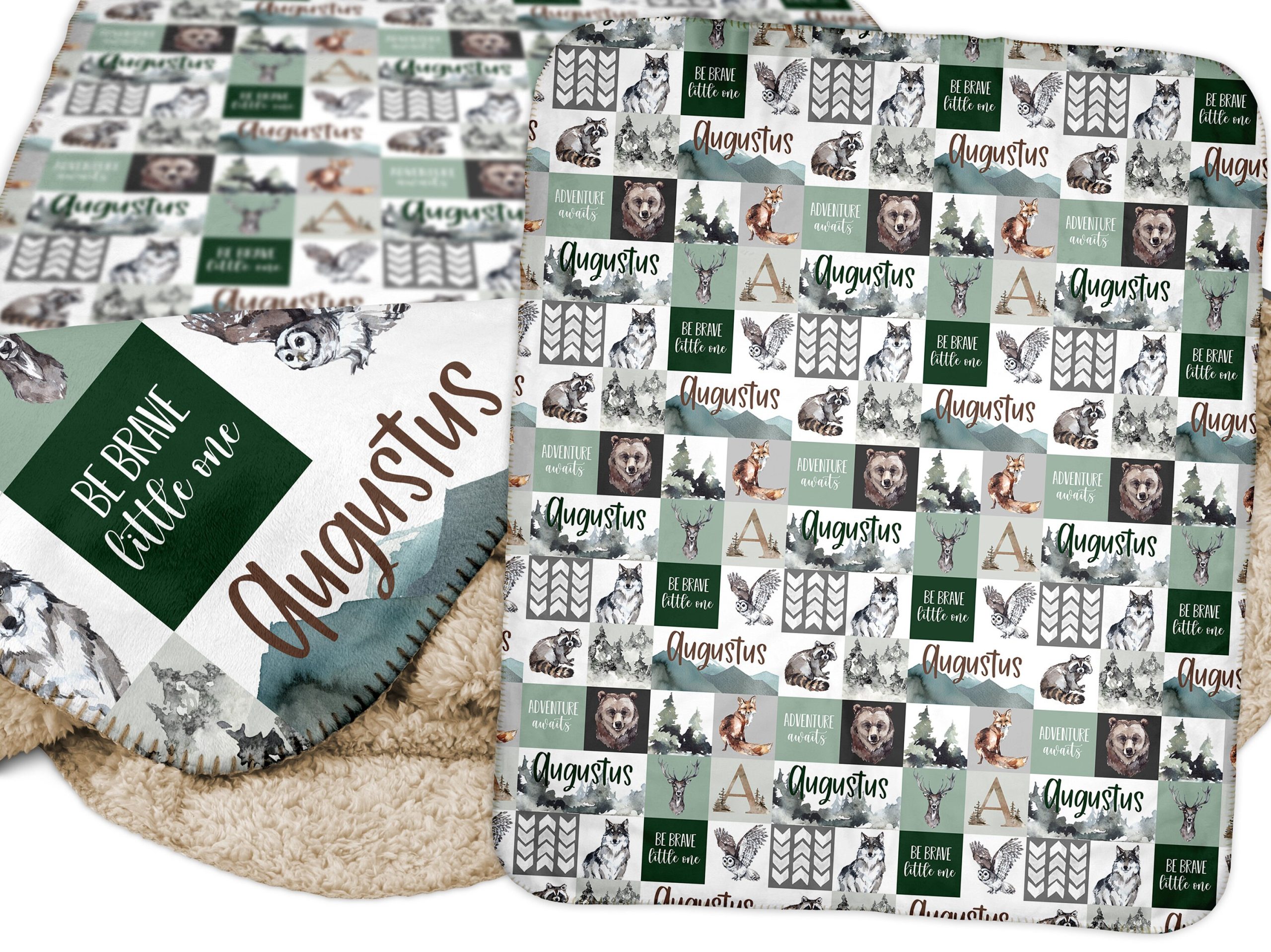 Baby Boy Woodland Forest Animals Blanket with Name / Personalized Baby Boy Blanket / Baby Blanket / Bear Deer Fox / Woodland || Collection