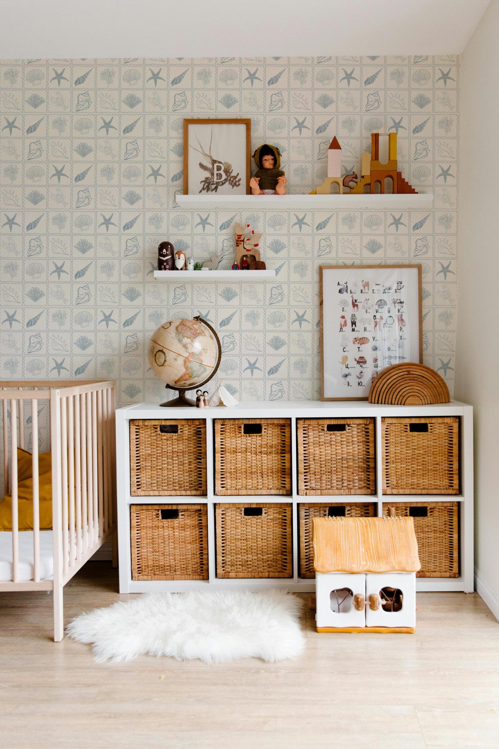 Beach Ocean Seashells, Coastal Nautical Subtle Blue, Peel and Stick Removable, Prepasted Traditional Bathroom Kitchen Mural Custom Sizes