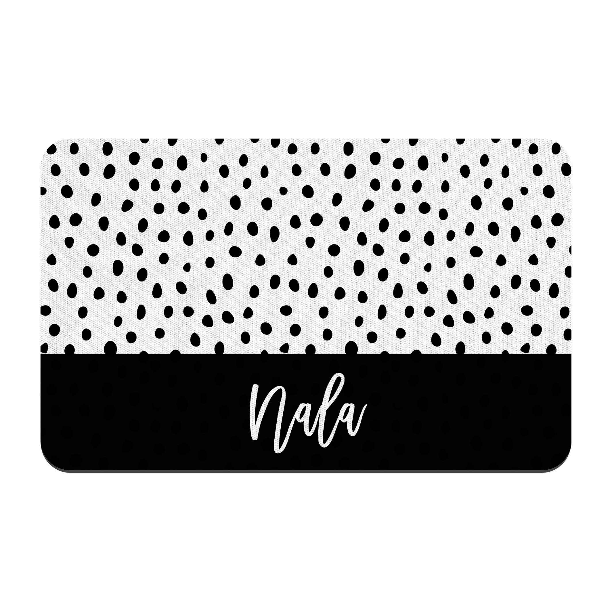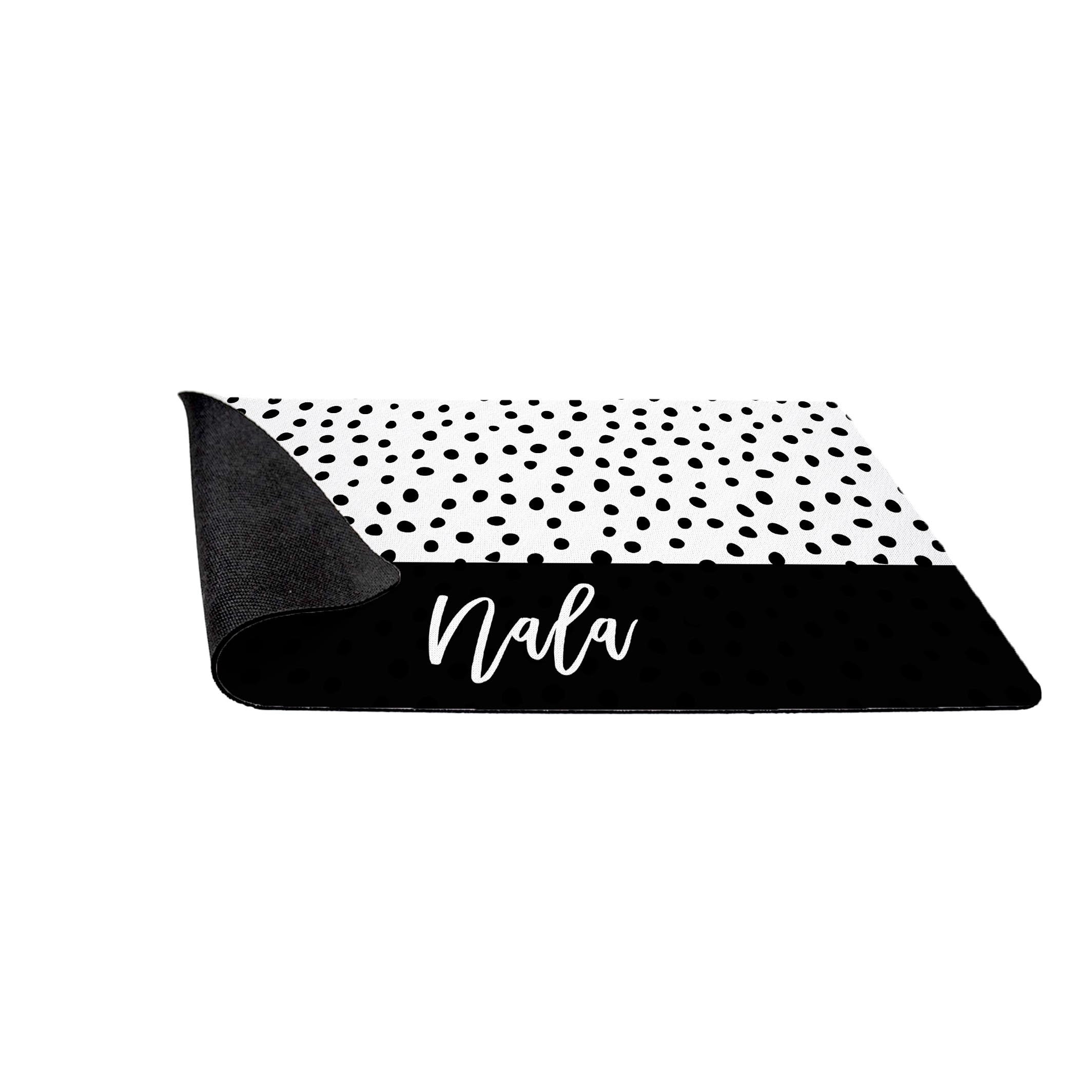 Black Dots Personalized Dog Bowl Mat, Custom Pet Placemat, New Puppy Supplies, Black and White