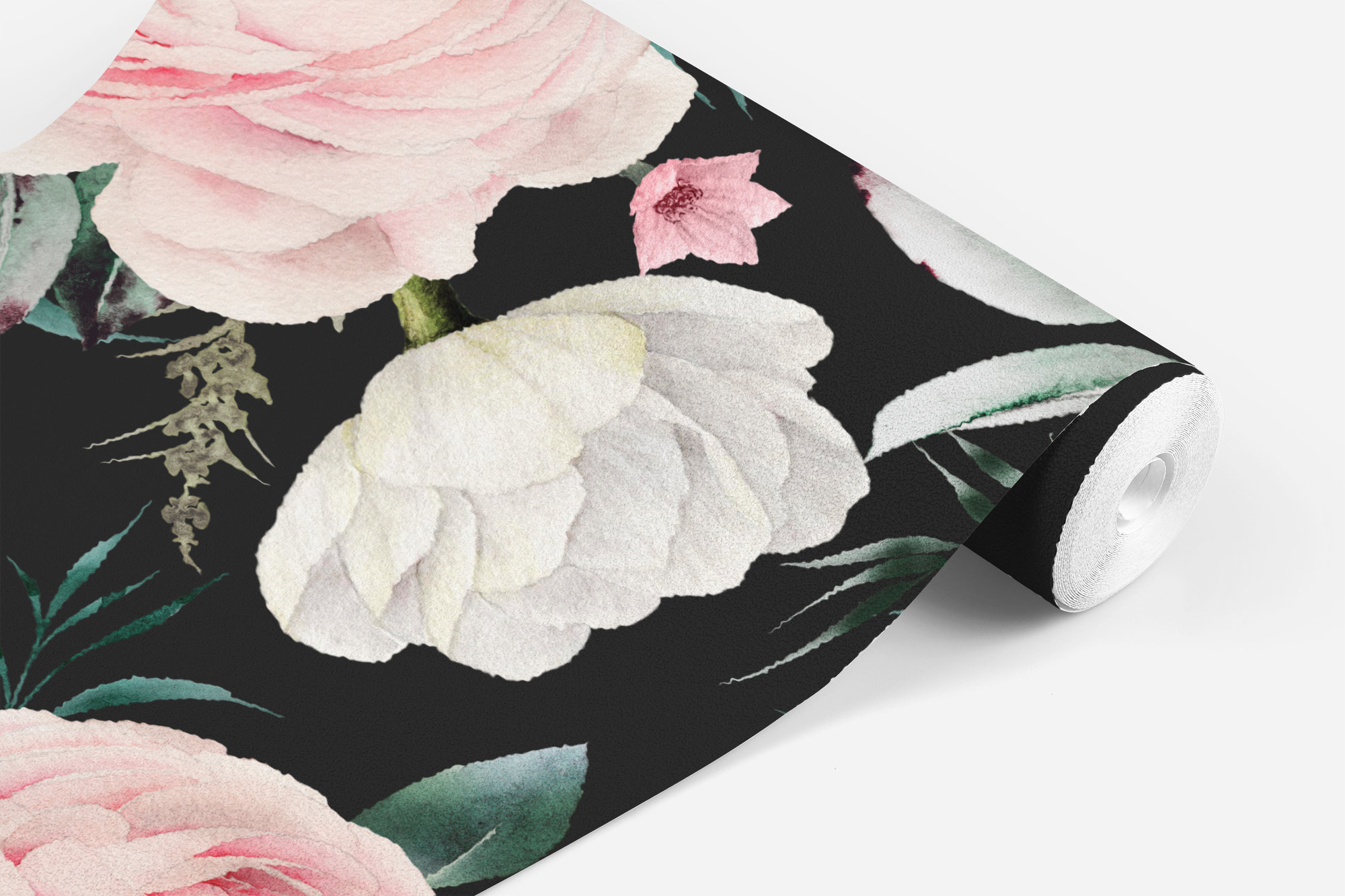 Black Watercolor Pink Rose Wallpaper / Peel and Stick Removable / Baby Girl Nursery Decor / Grace Collection