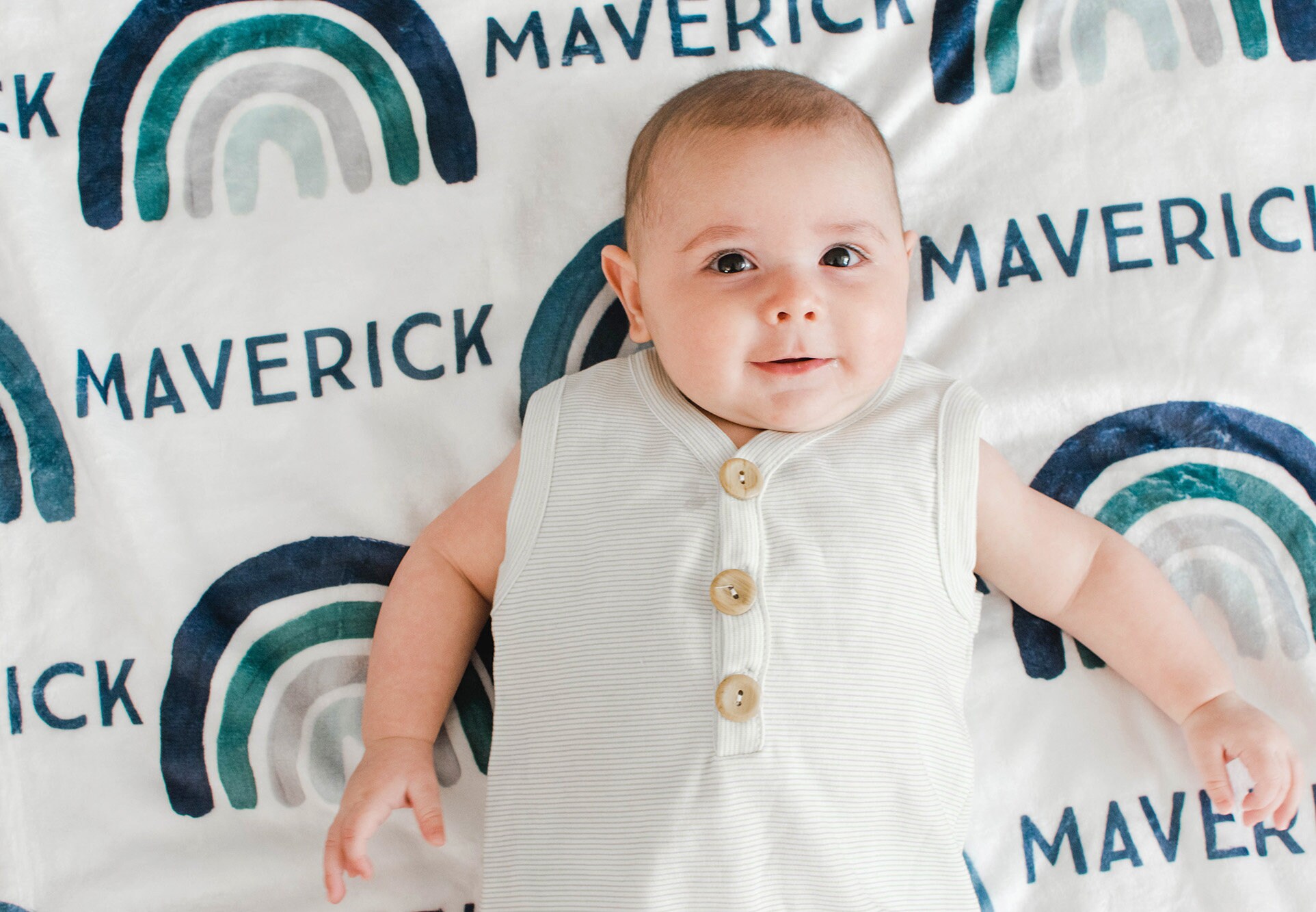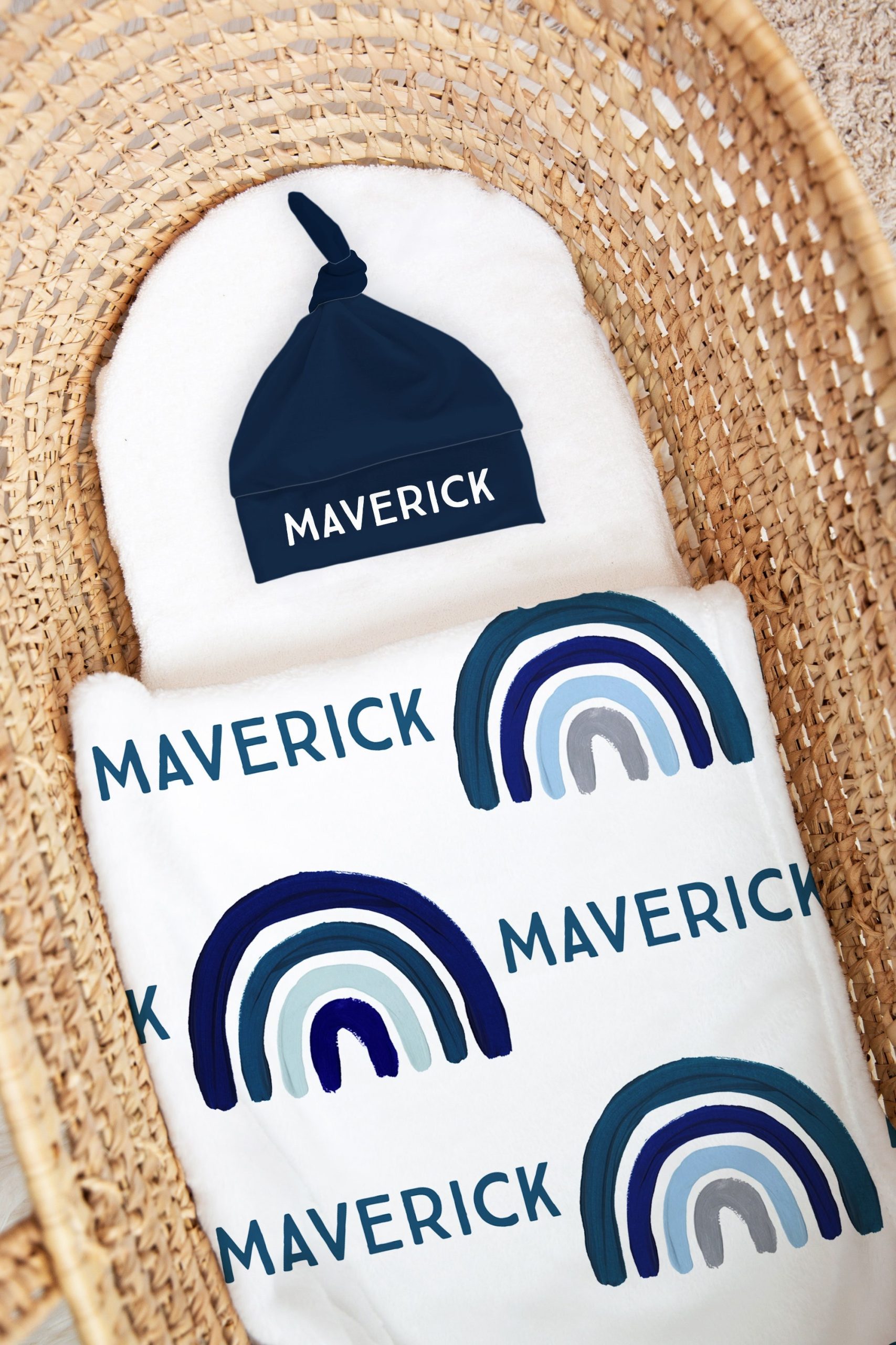 Boy Navy Rainbow Blanket with Knot Hat / NEWBORN Rainbow Baby / Boy Rainbow / Personalized Baby Name Blanket / Rainbow Collection