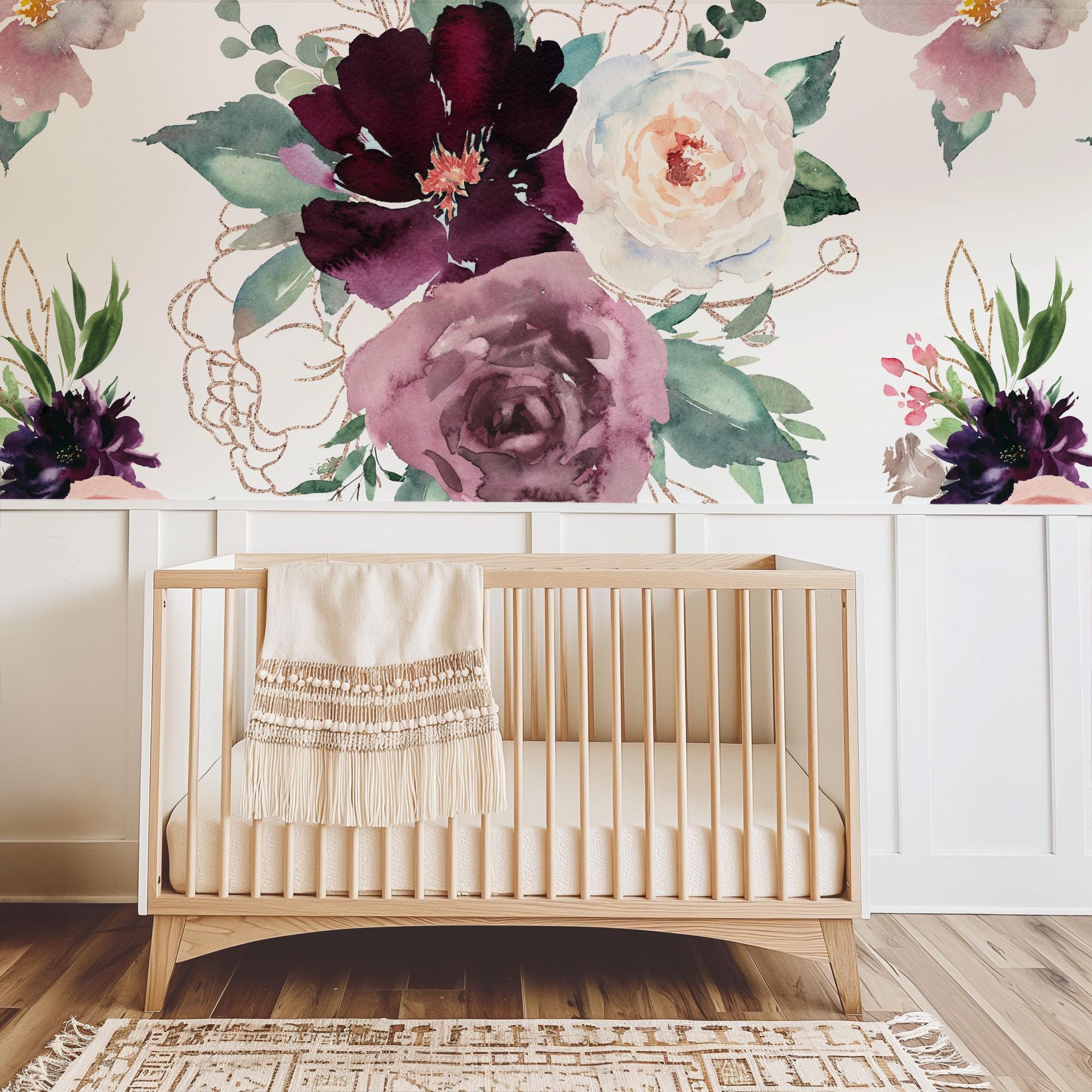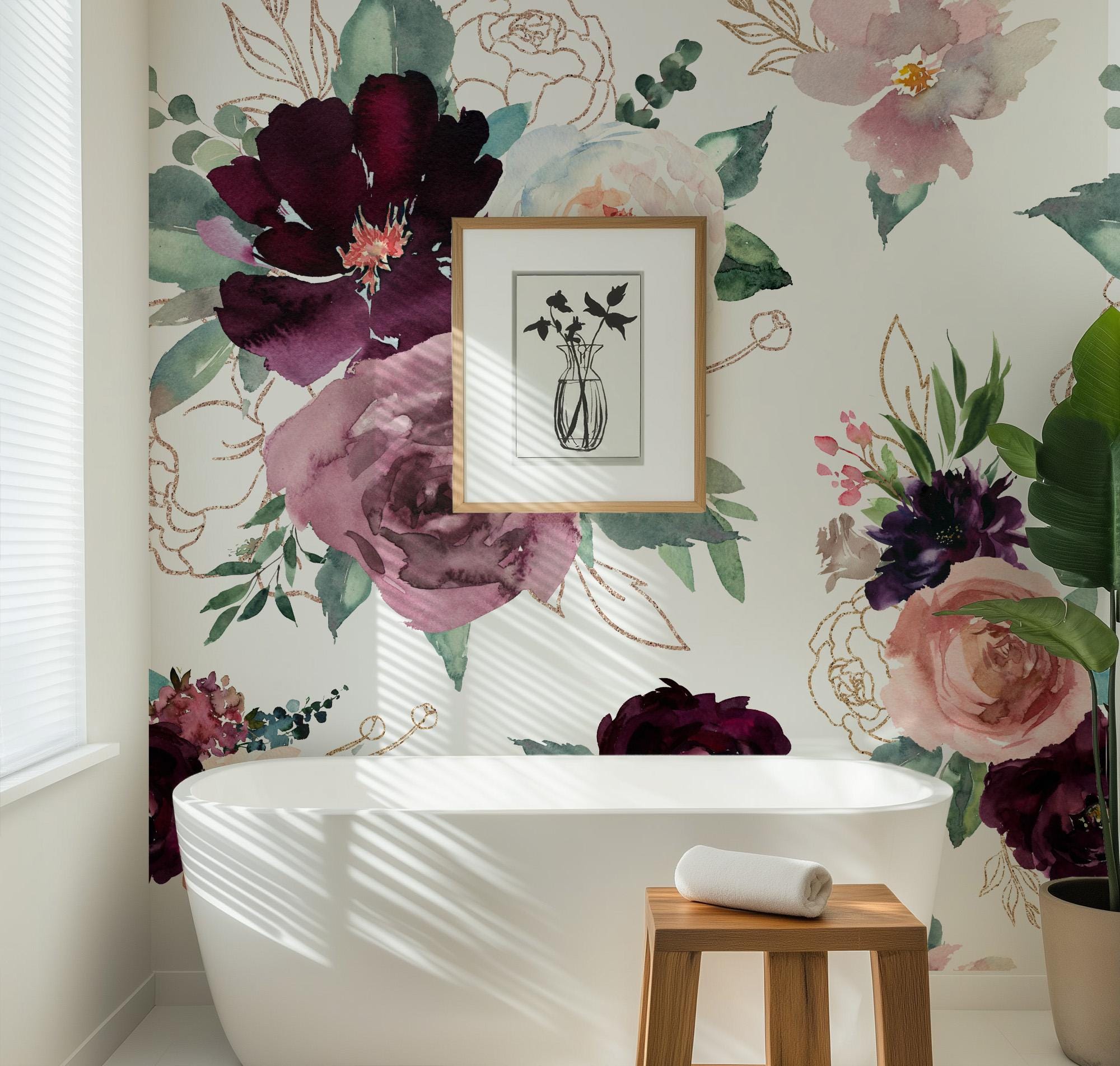 Bring depth and elegance to your space with our burgundy mauve floral wallpaper 🌹 Featuring bold roses in deep maroon and soft blush tones, this peel-and-stick mural adds a dramatic touch to nurseries, bedrooms, or statement walls.