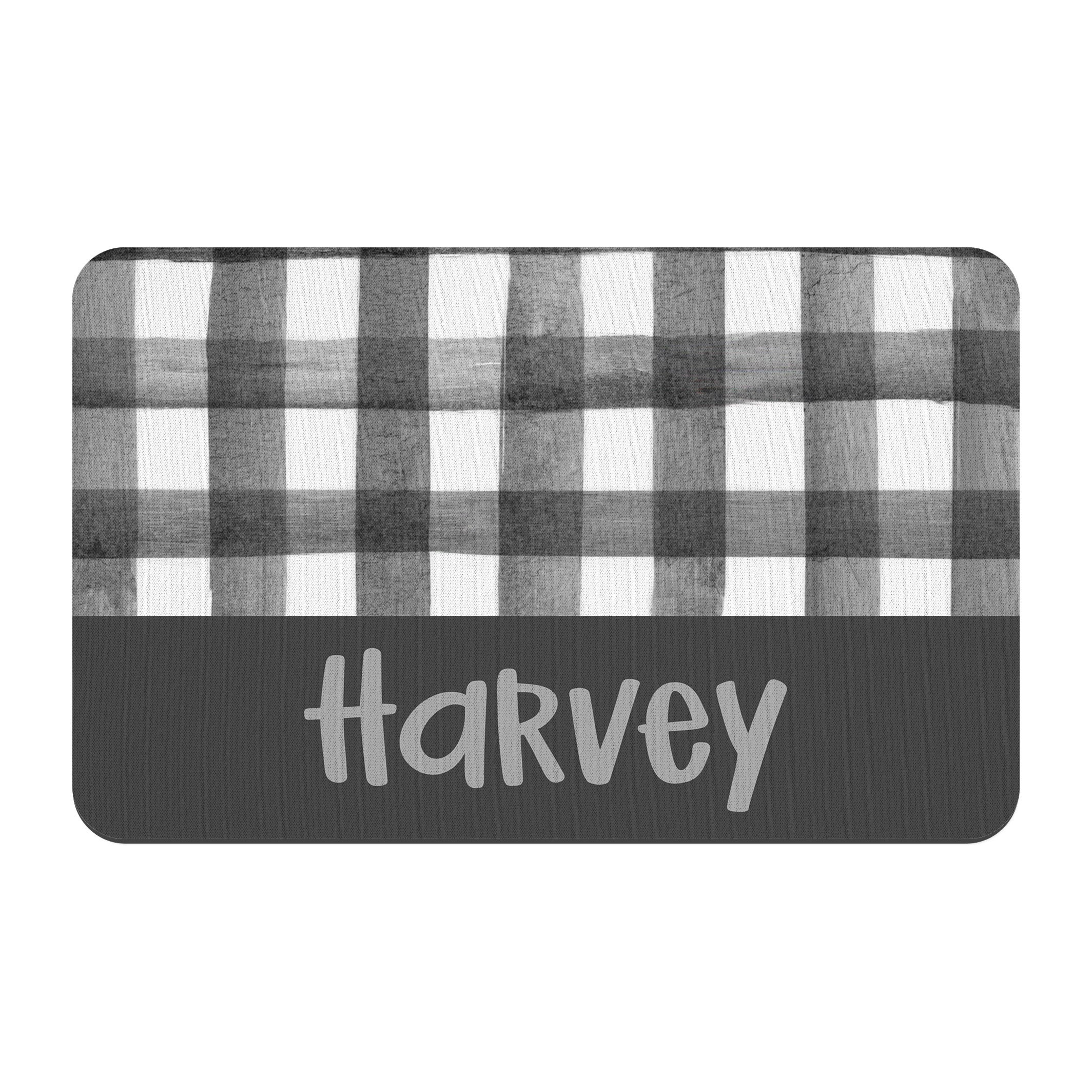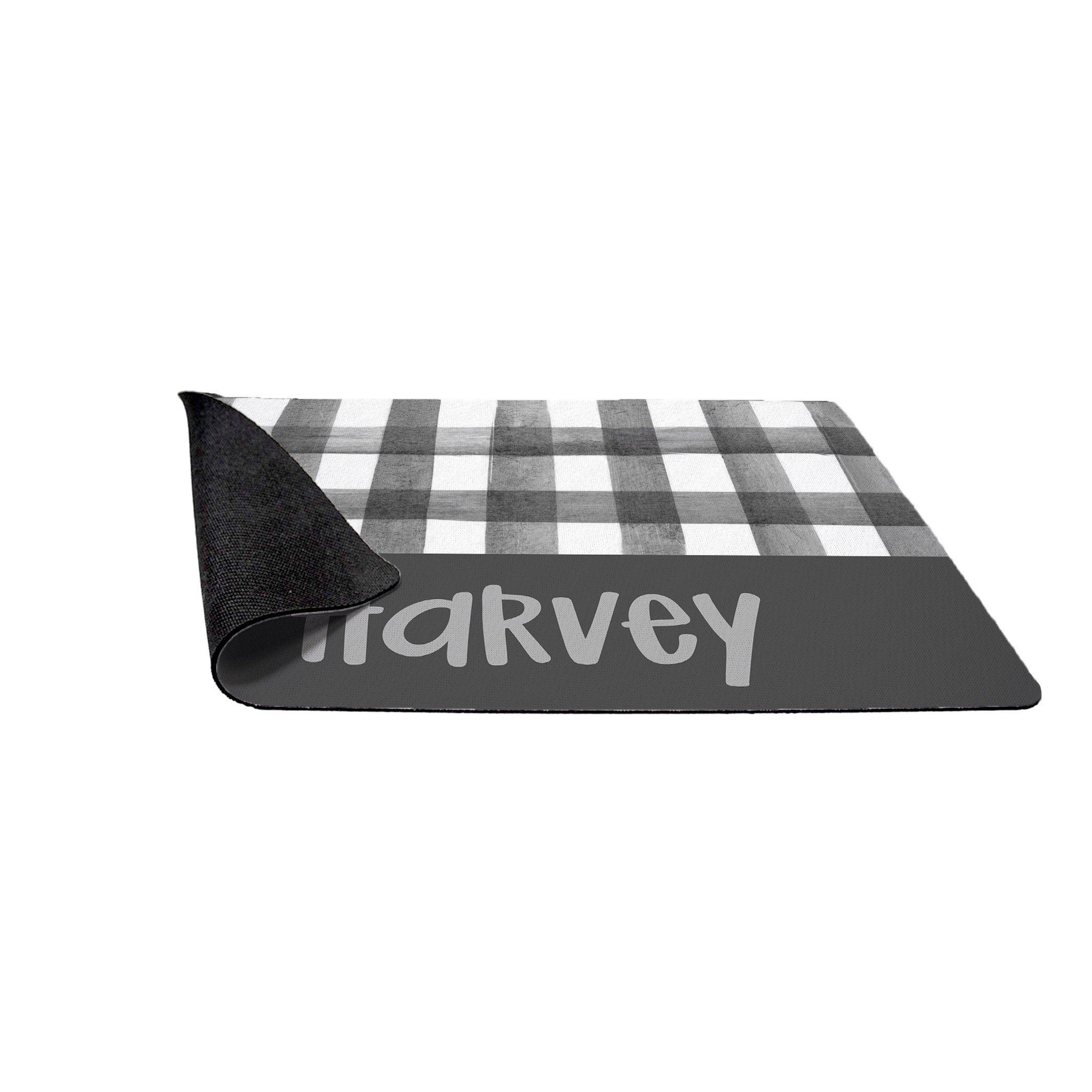 Charcoal Grey Gingham Pet Food Placemat / Watercolor Gingham / Personalized Pet Mat / Dog and Cat Supplies / Charcoal Grey and White