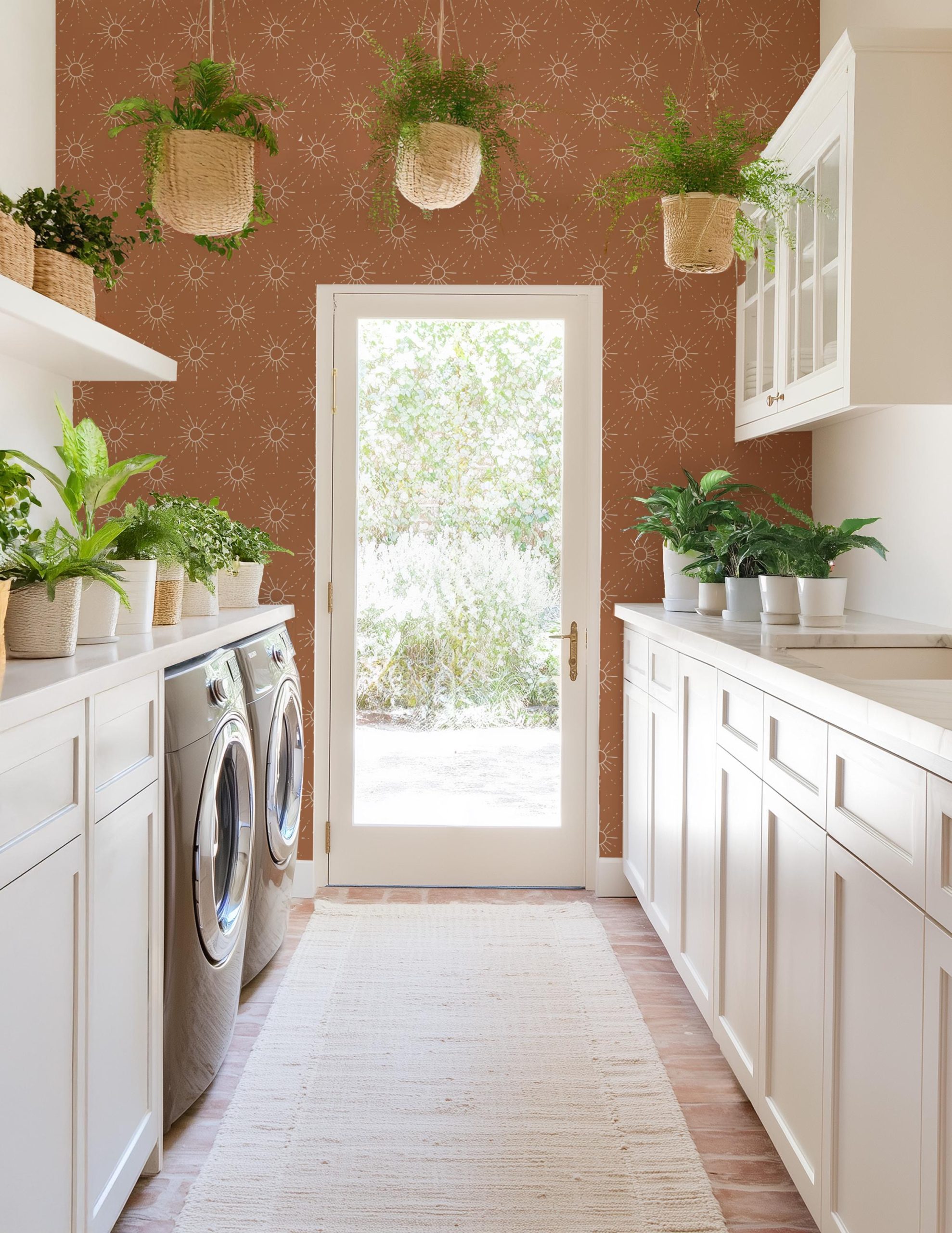 Copper Sun Wallpaper, Peel Stick Removable, Baby Nursery Decor Bedroom, Neutral Trendy Boho, Groovy Retro Vintage Line Art, Traditional