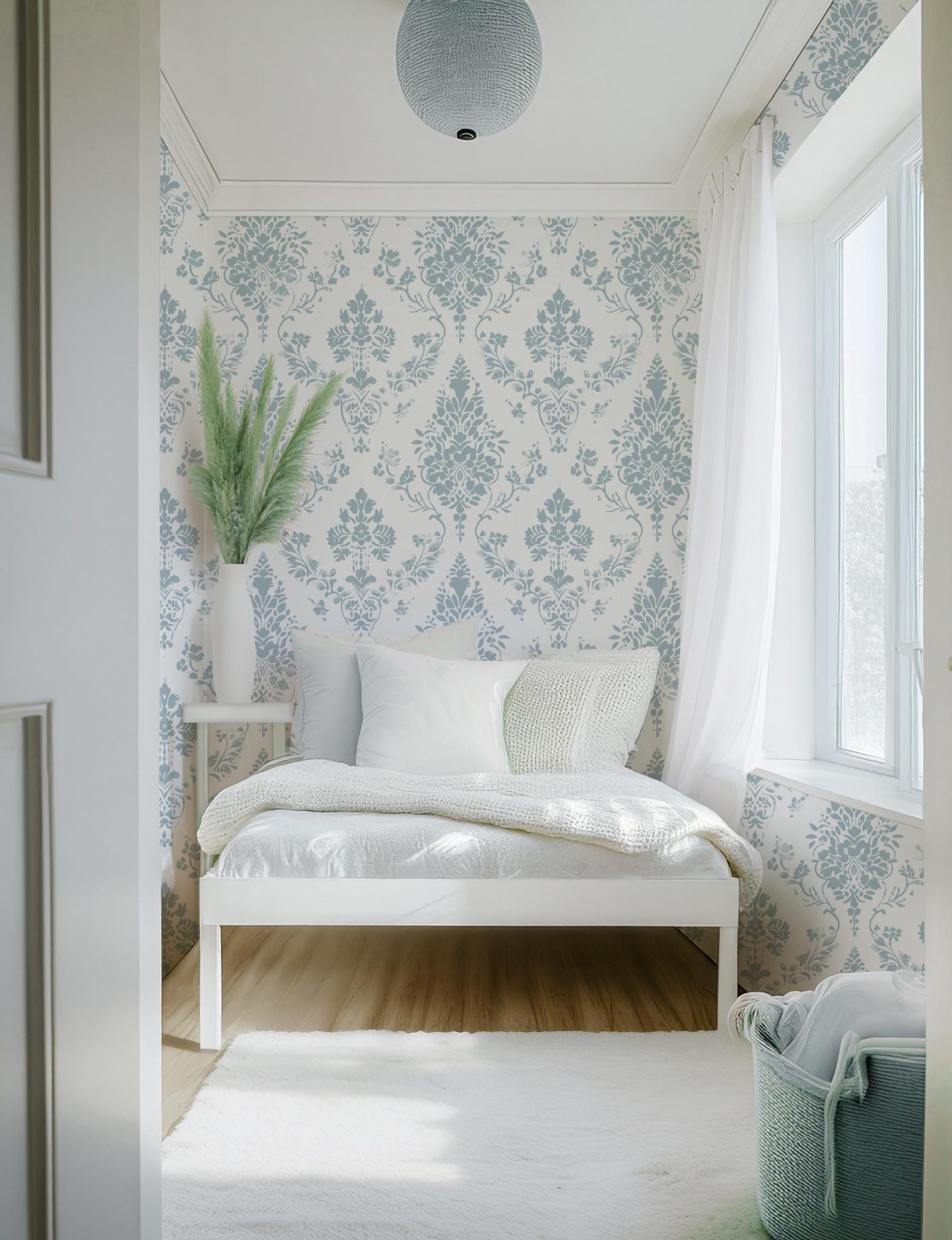 🩵 Dusty Blue Damask Design – Classic and refined with intricate floral details, perfect for traditional and vintage spaces.