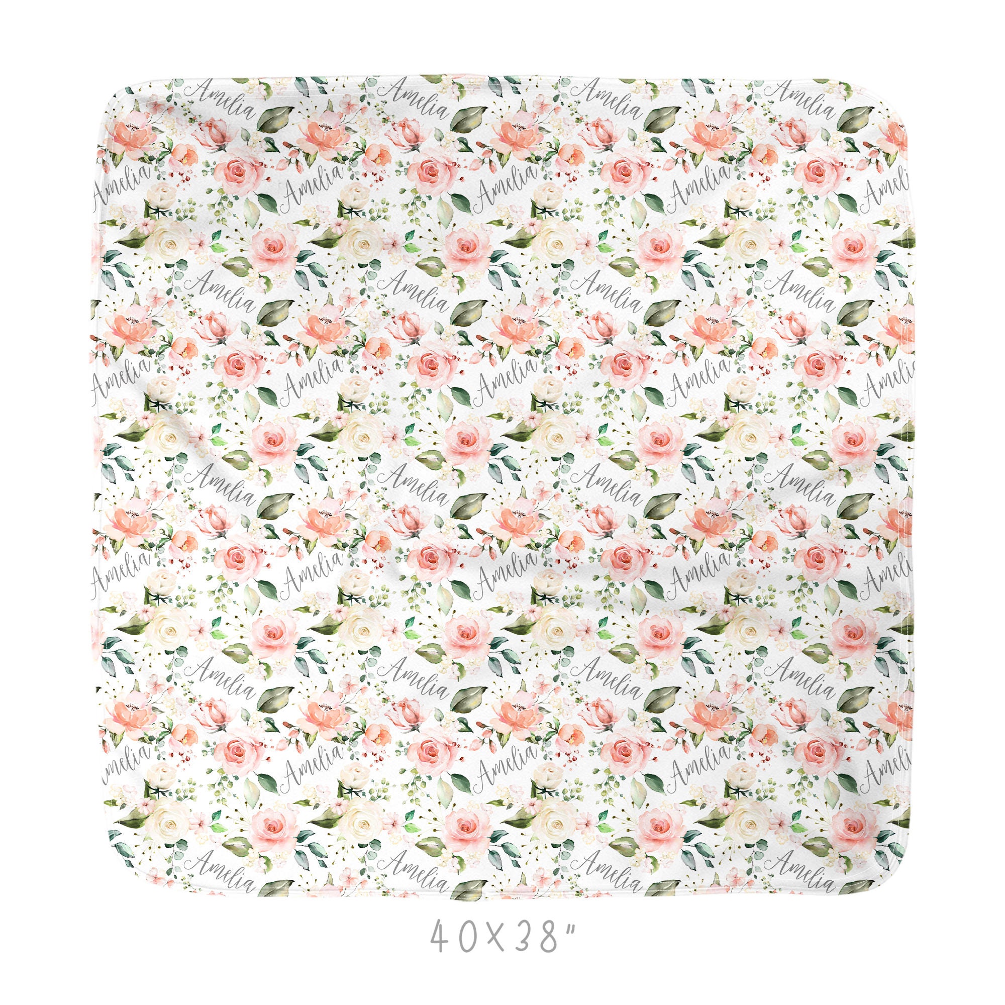 Floral Boho Swaddle Blanket Headband Hat Set / Personalized Baby Shower Gift / Hospital Newborn Photos Prop / Custom Name Printed
