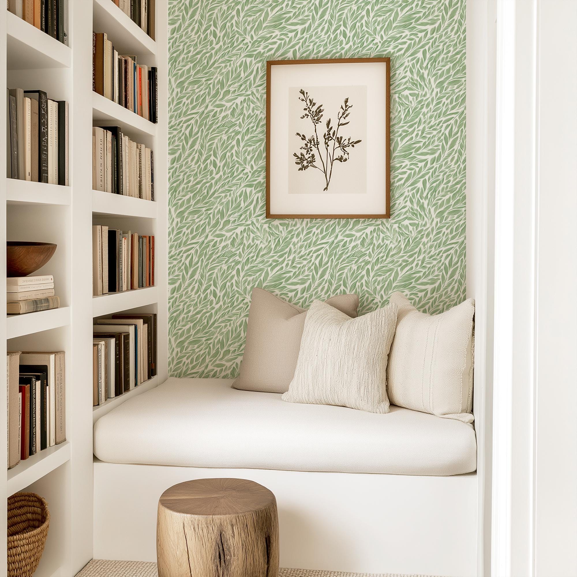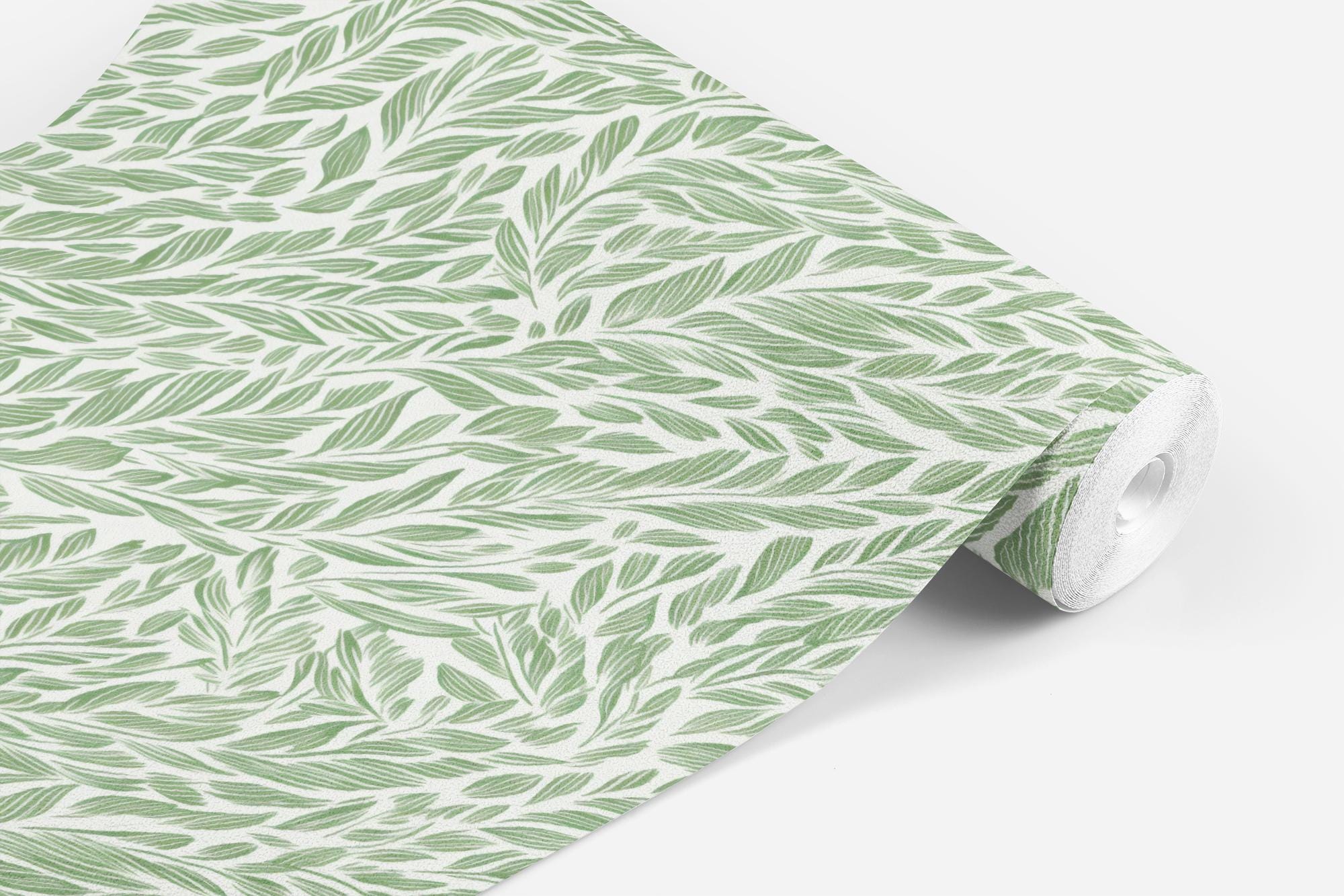 Green Botanical Pressed Flower Wallpaper, Butterfly Greenery Plant Garden, Peel and Stick Removable, Prepasted Traditional Custom Dimensions, Hand Drawn Vintage Neutral Boho Cottage Core Fern Plants Lover Fairy Forest