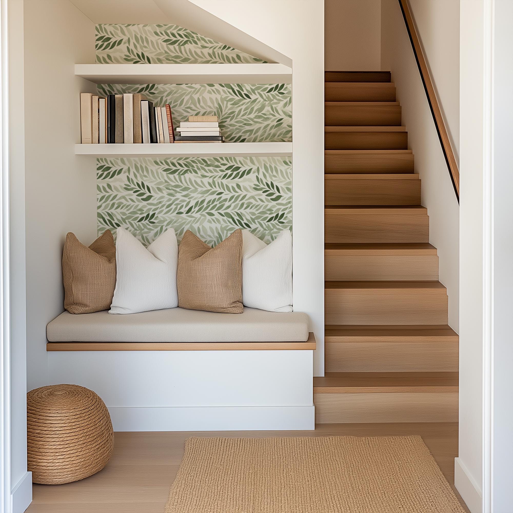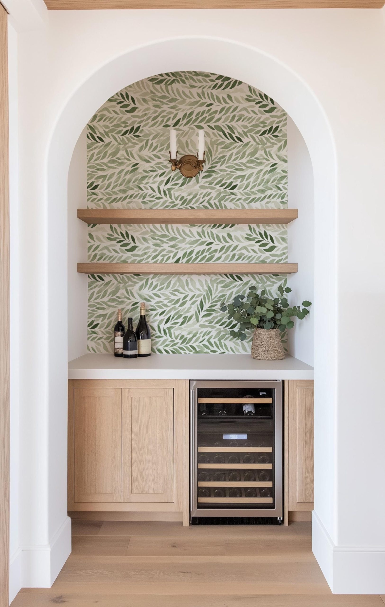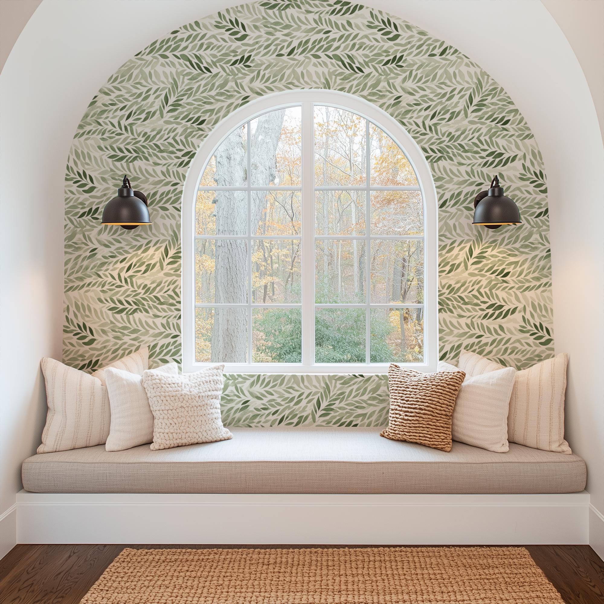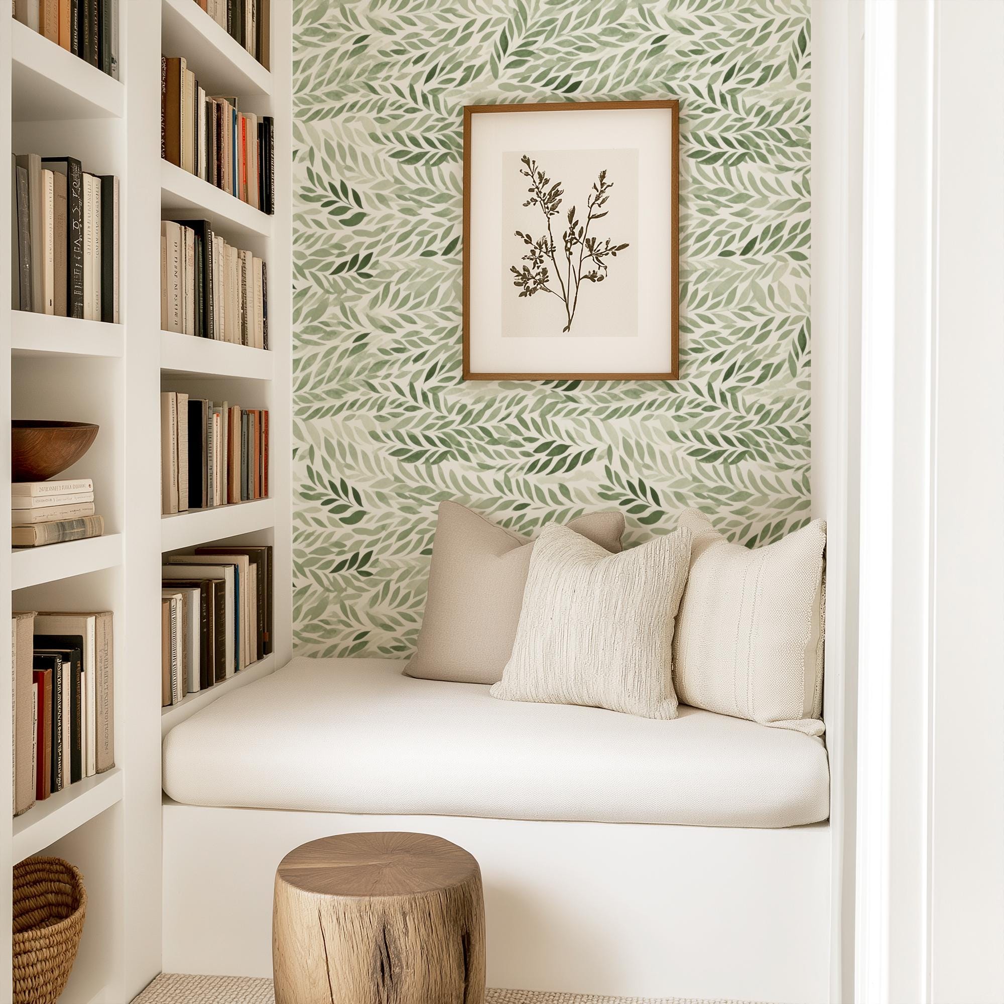 Green Leaves Botanical Pressed Wallpaper, Fern Greenery Plant Garden, Peel Stick Prepasted Traditional, Custom Dimensions Sage Botanical