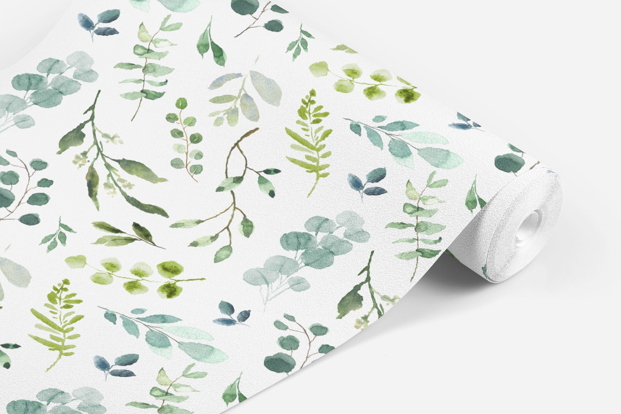 Greenery Neutral Leaf Wallpaper / Peel and Stick Removable / Baby Nursery Decor / Blue Green Colors Boho / Olive Succulent Collection