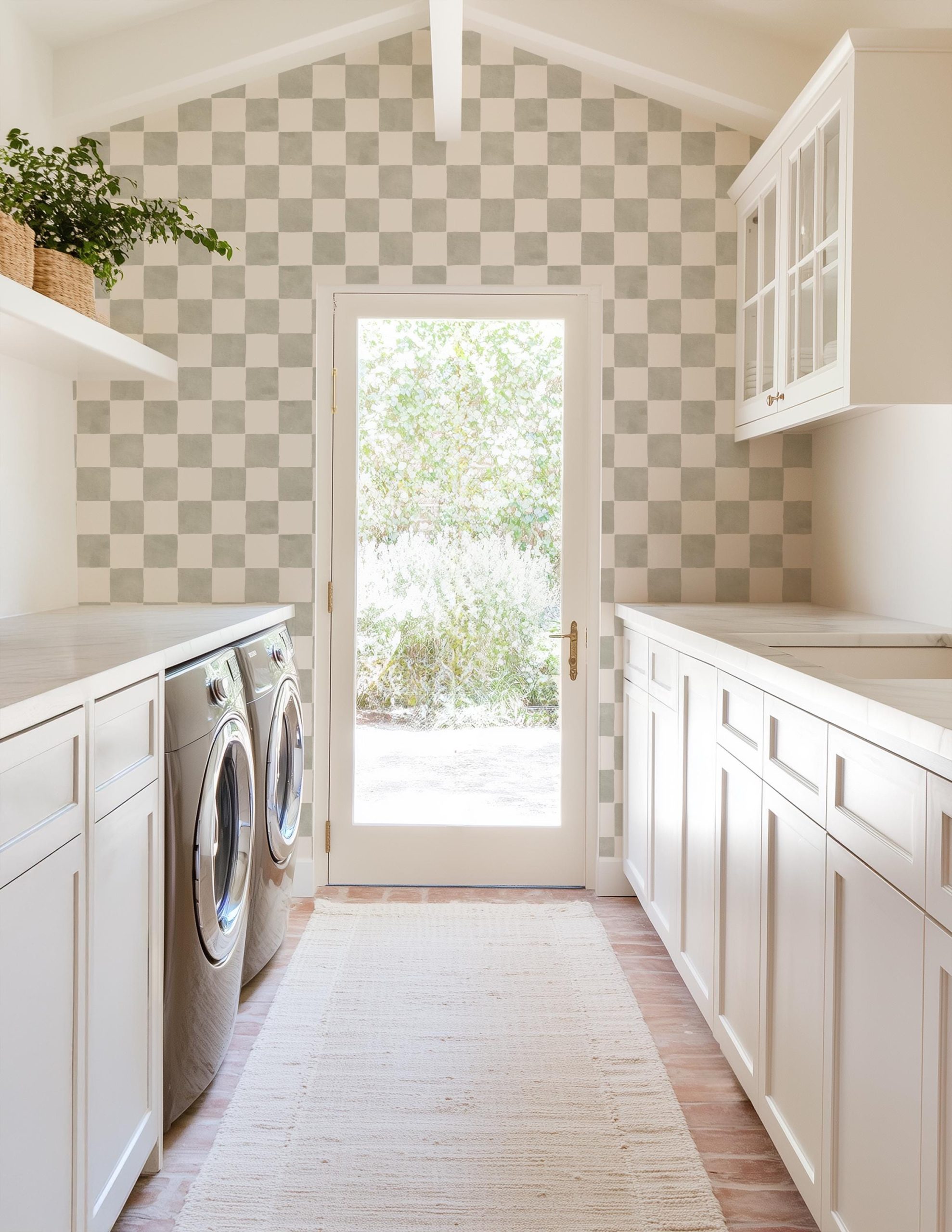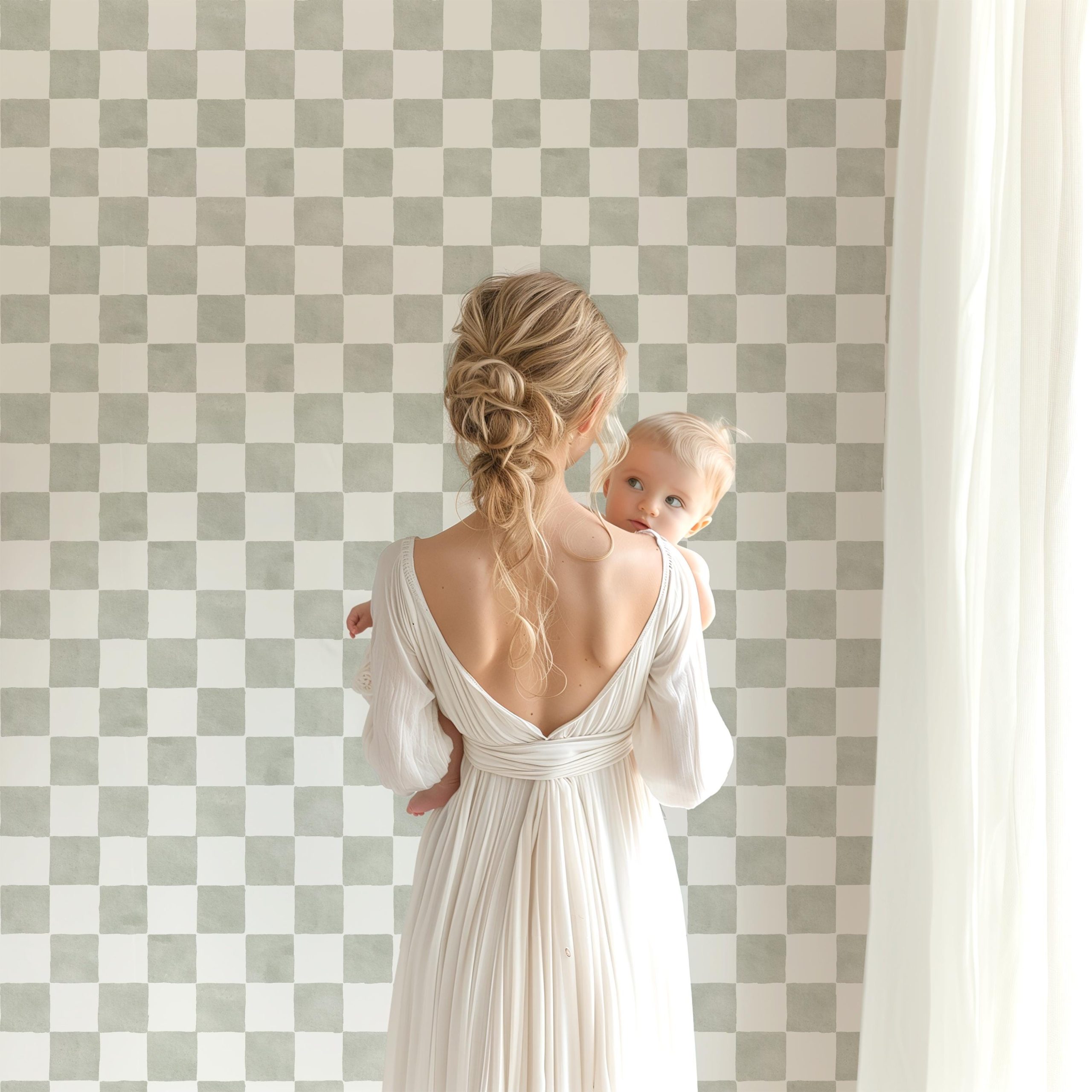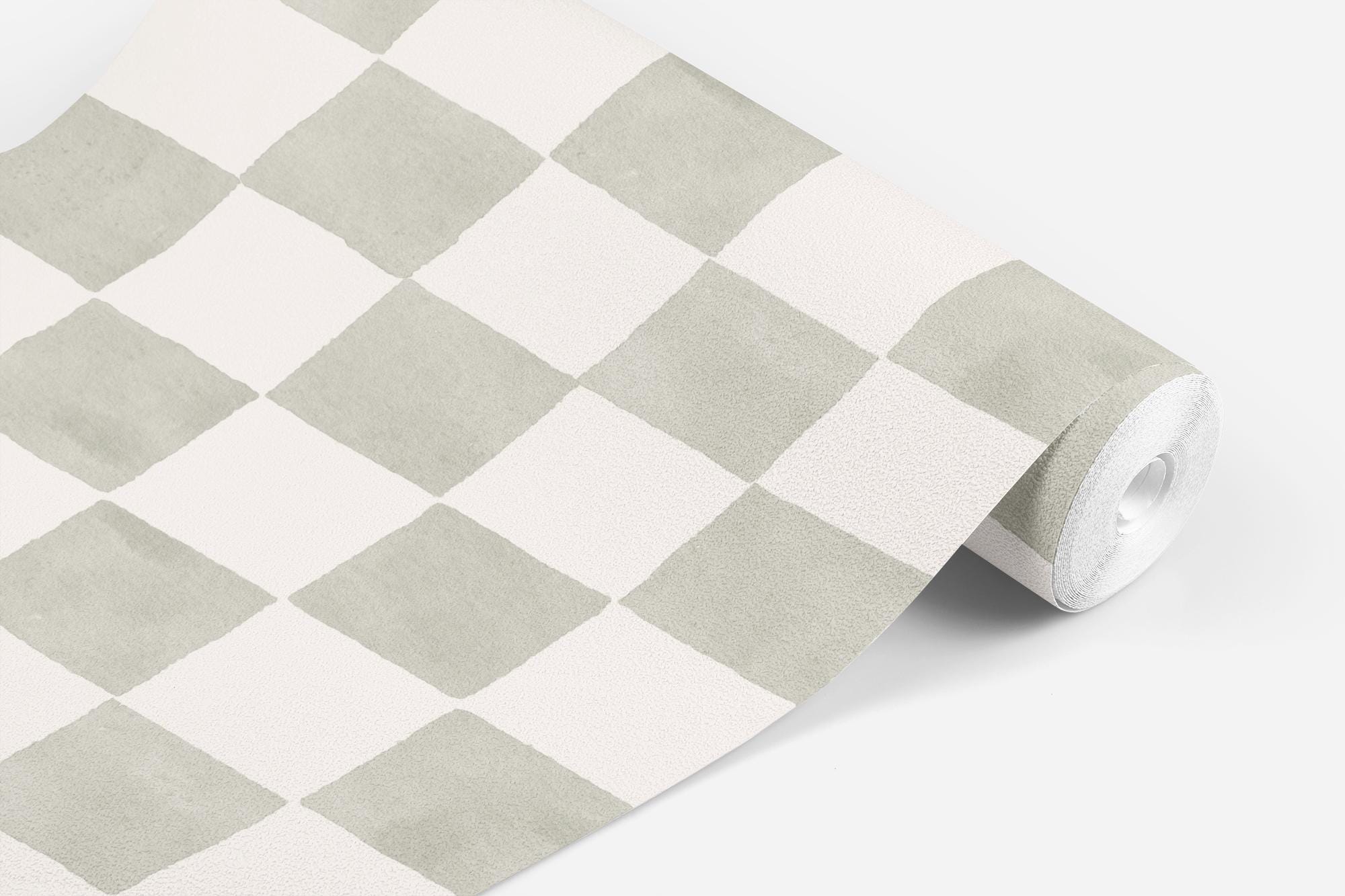 Grey Checkered Watercolor Wallpaper, Check Peel Stick Removable, Unpasted Traditional Option, Retro Boho Check Baby Neutral Accent Gingham