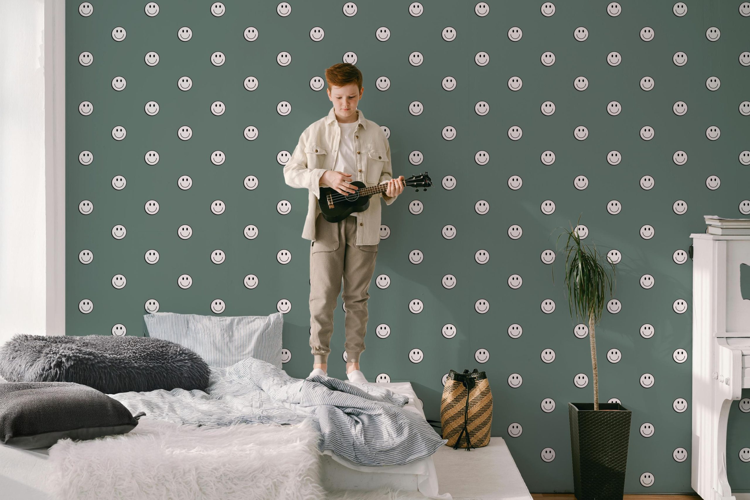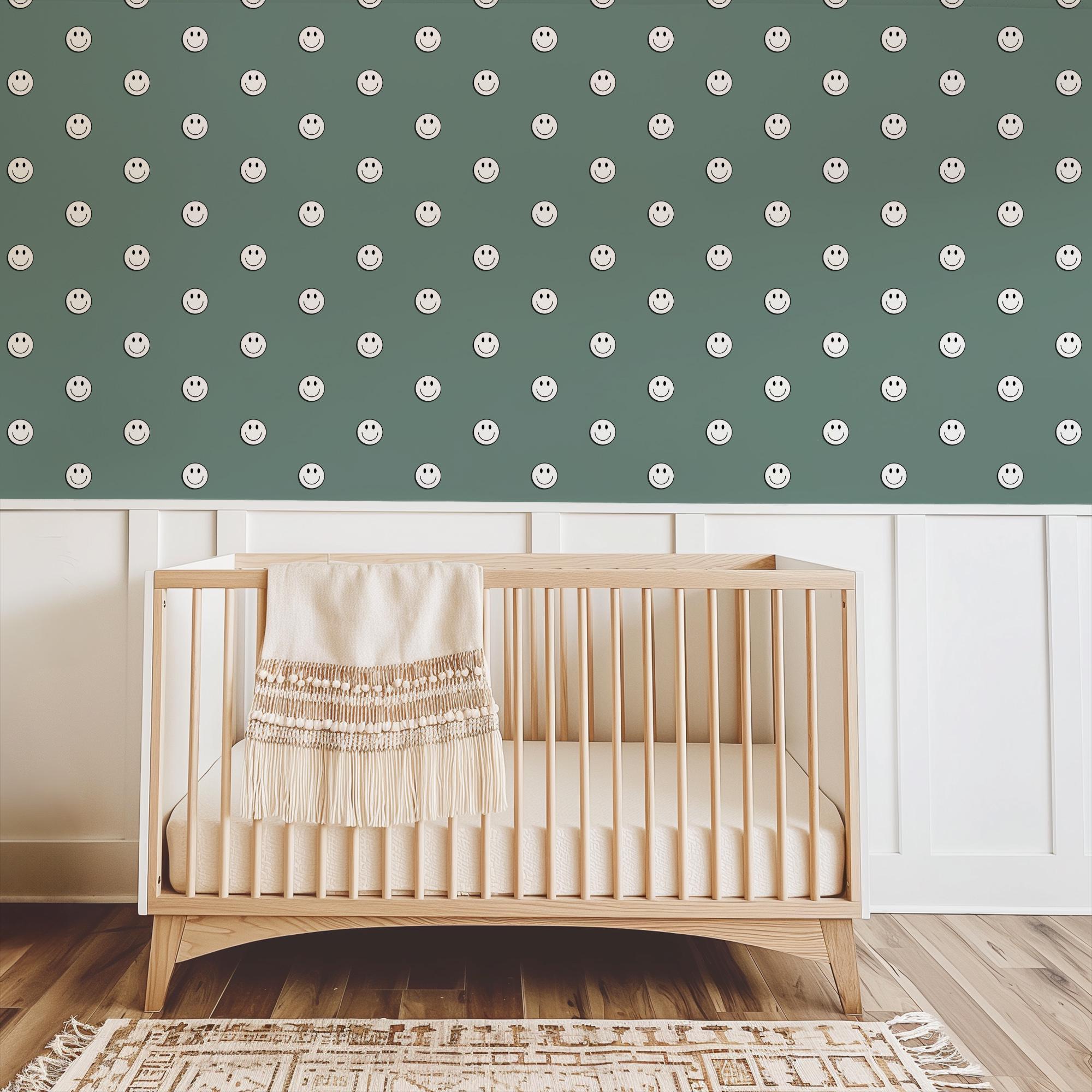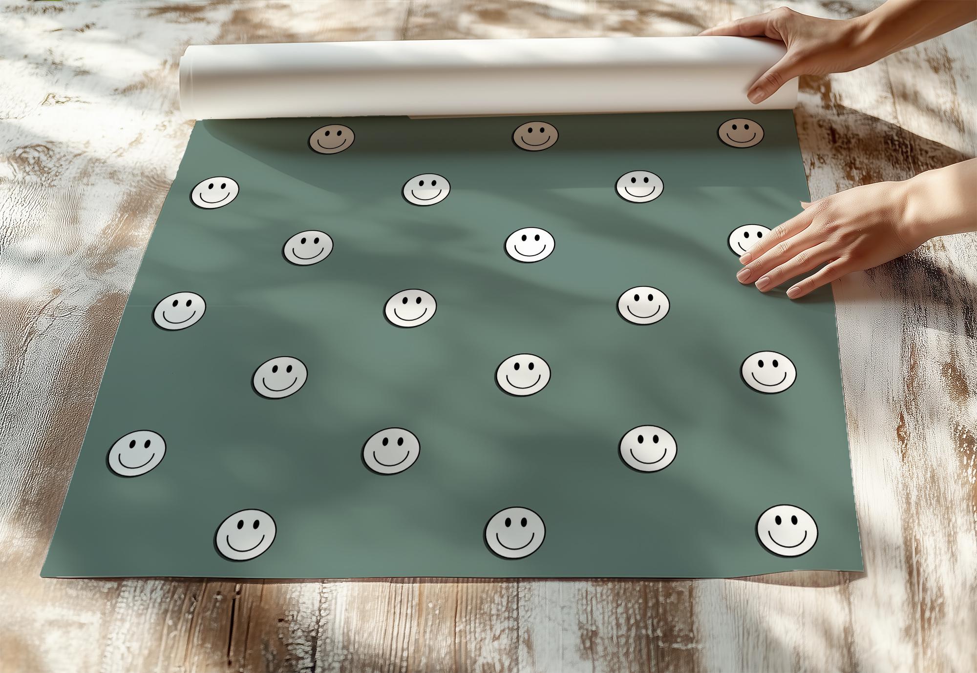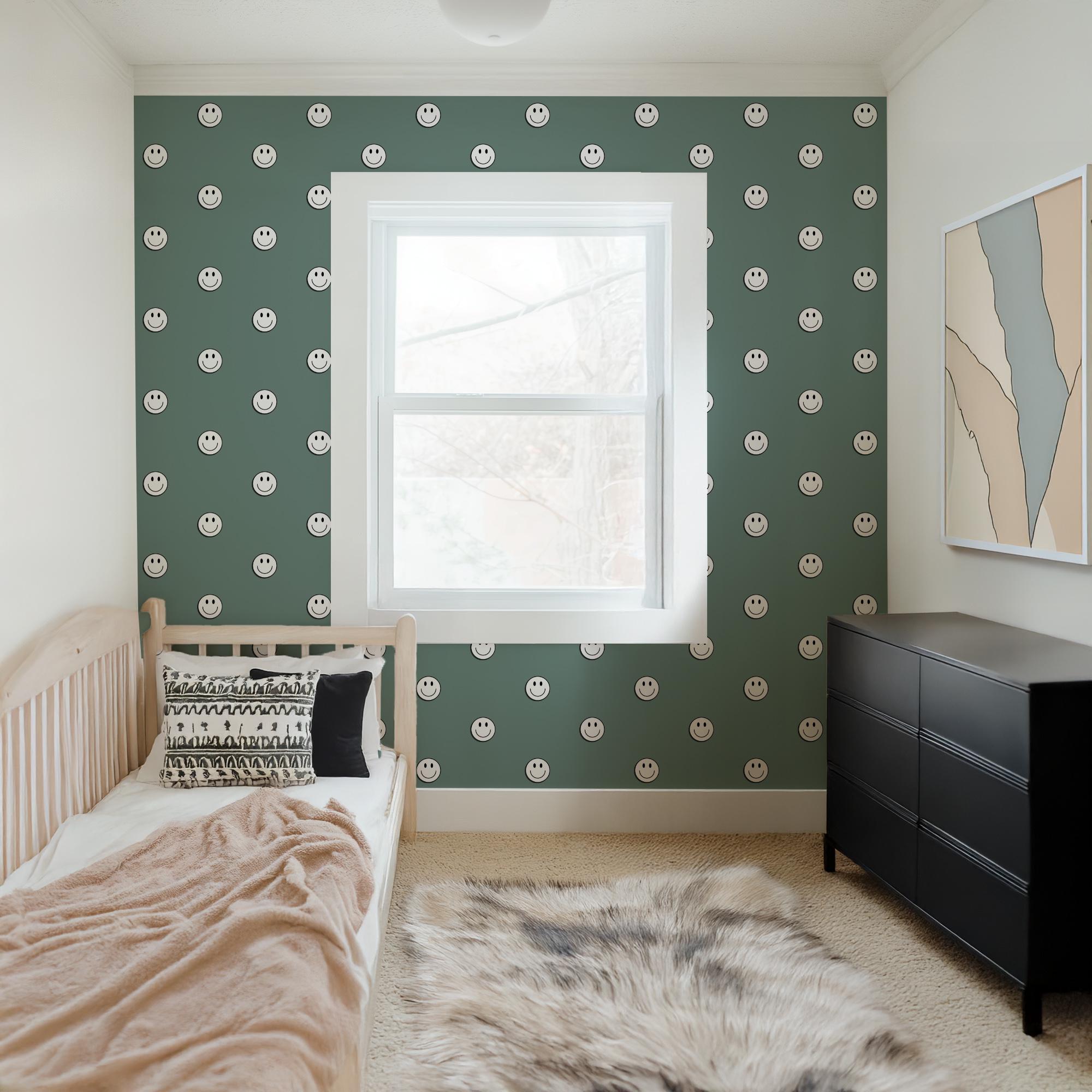 Jade Smile Face Wallpaper, Blue Green 70s Retro Grunge, Peel Stick Removable, Retro Rad Cool Kid Boys Room, Skater Skateboard Cool Kid