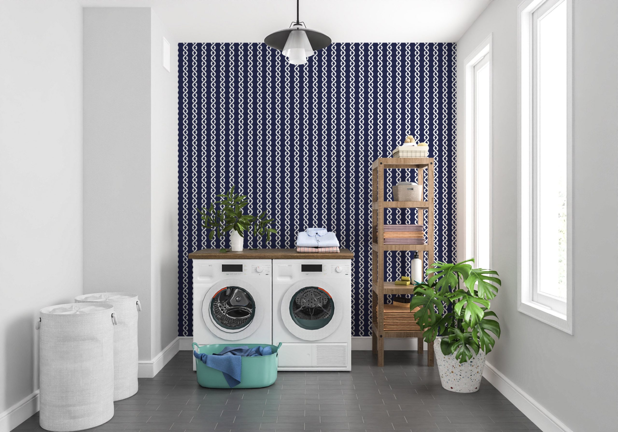 Nautical Rope Wallpaper, Navy and White Geometric Pattern, Modern Coastal Beach Tropical, Peel and Stick Removable, Pre-pasted, Traditional