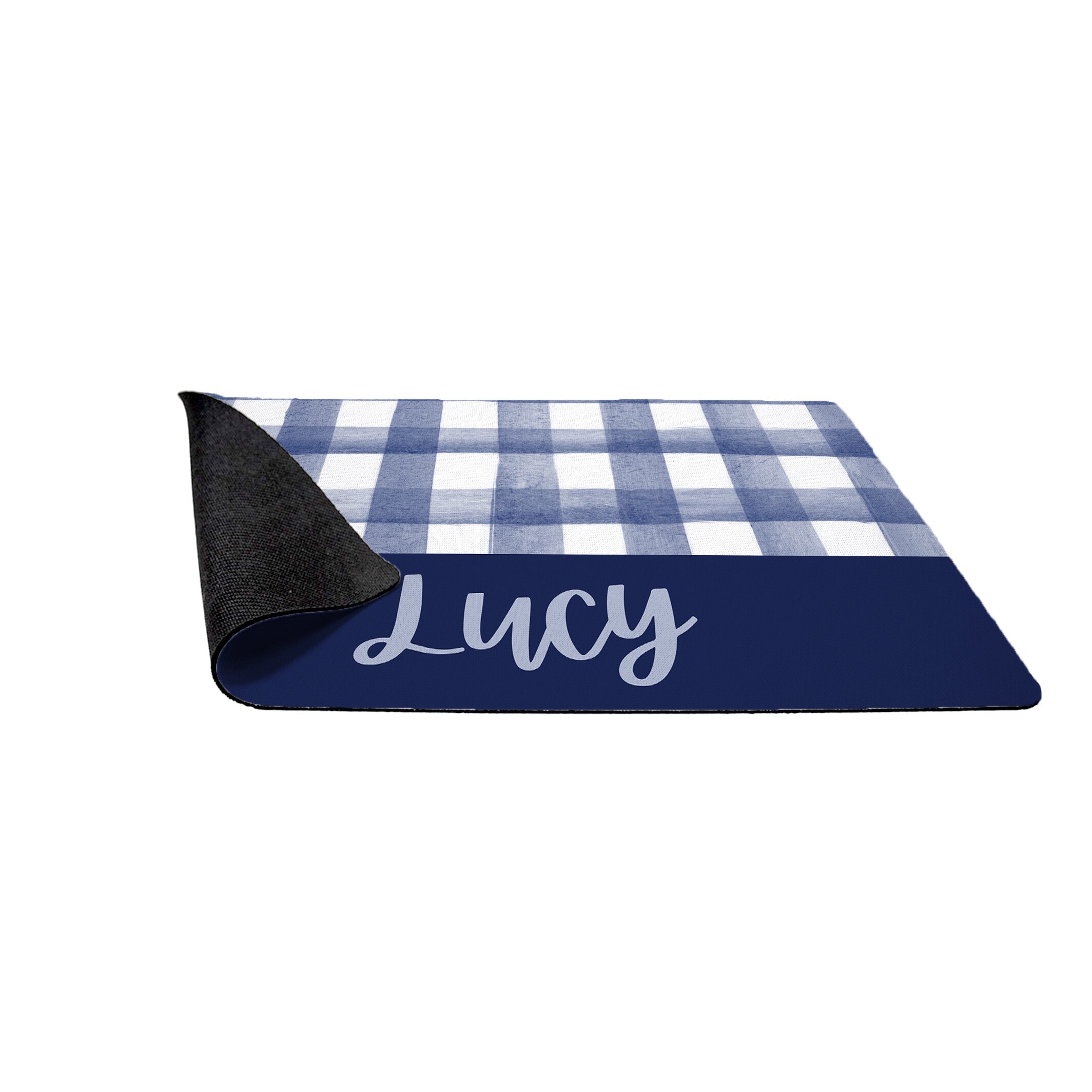 Navy Blue Watercolor Gingham Pet Food Mat / Personalized Pet placemat / Pet Supplies / Food and Water Bowl Mat / Navy Blue and White