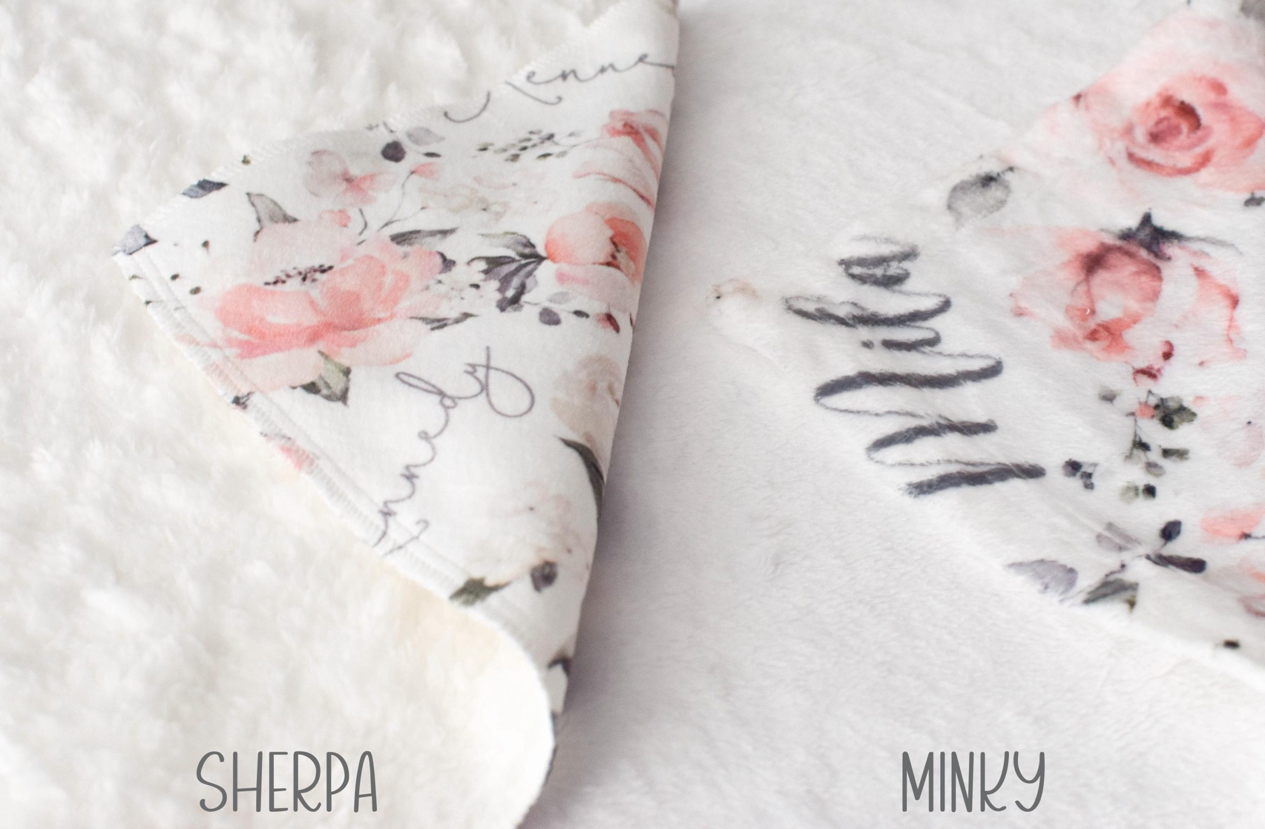 • SHERPA – Keep your baby nice and cozy in the winter months with one of our incredibly soft sherpa blankets. One sided print with a whip-stitched finished edge reversing to a white sherpa backing.