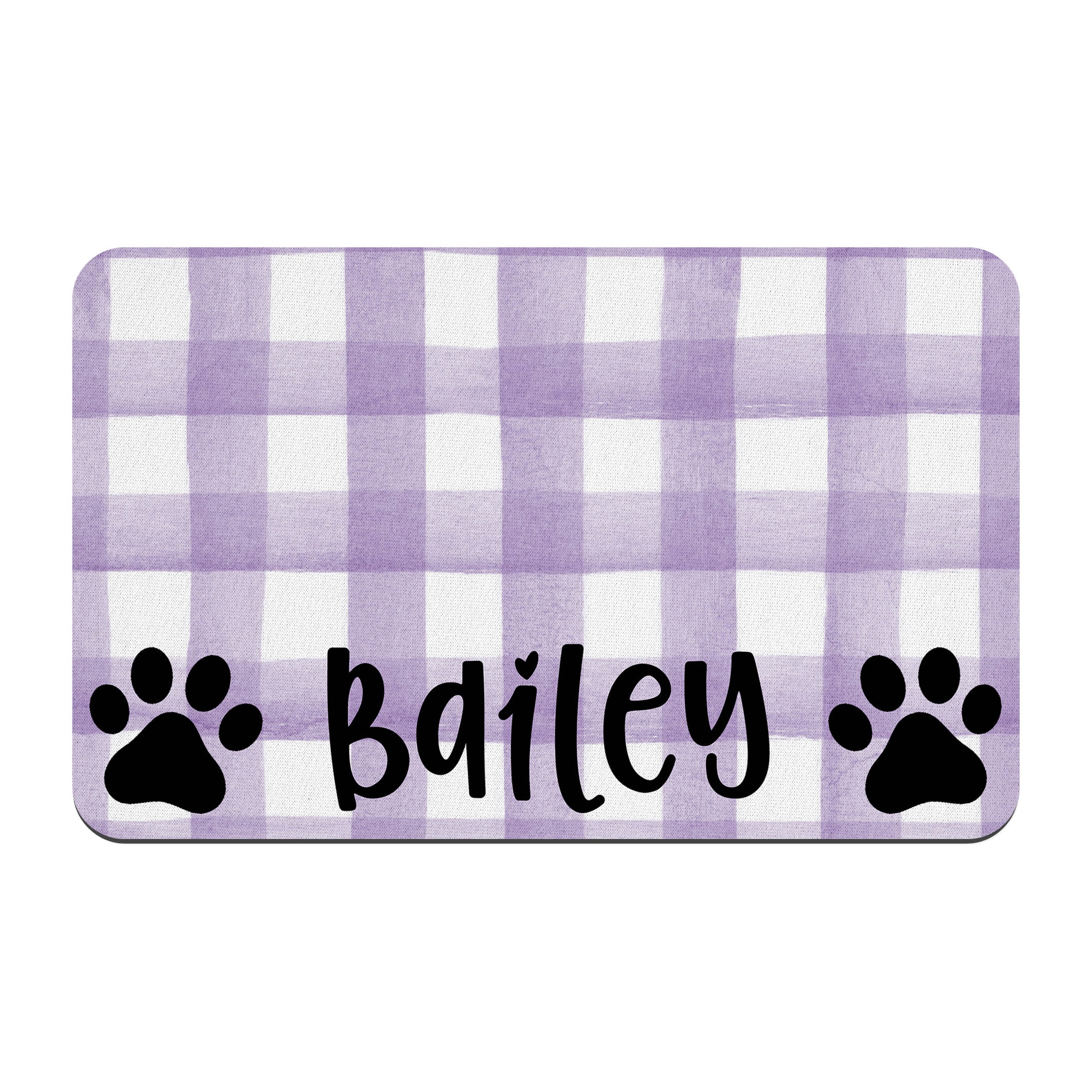Paw Prints and Purple Gingham Personalized Pet Mat / Pet Name / Girl Cat Dog Bowl Mat / Pet Supplies / Farmhouse Style Watercolor Gingham