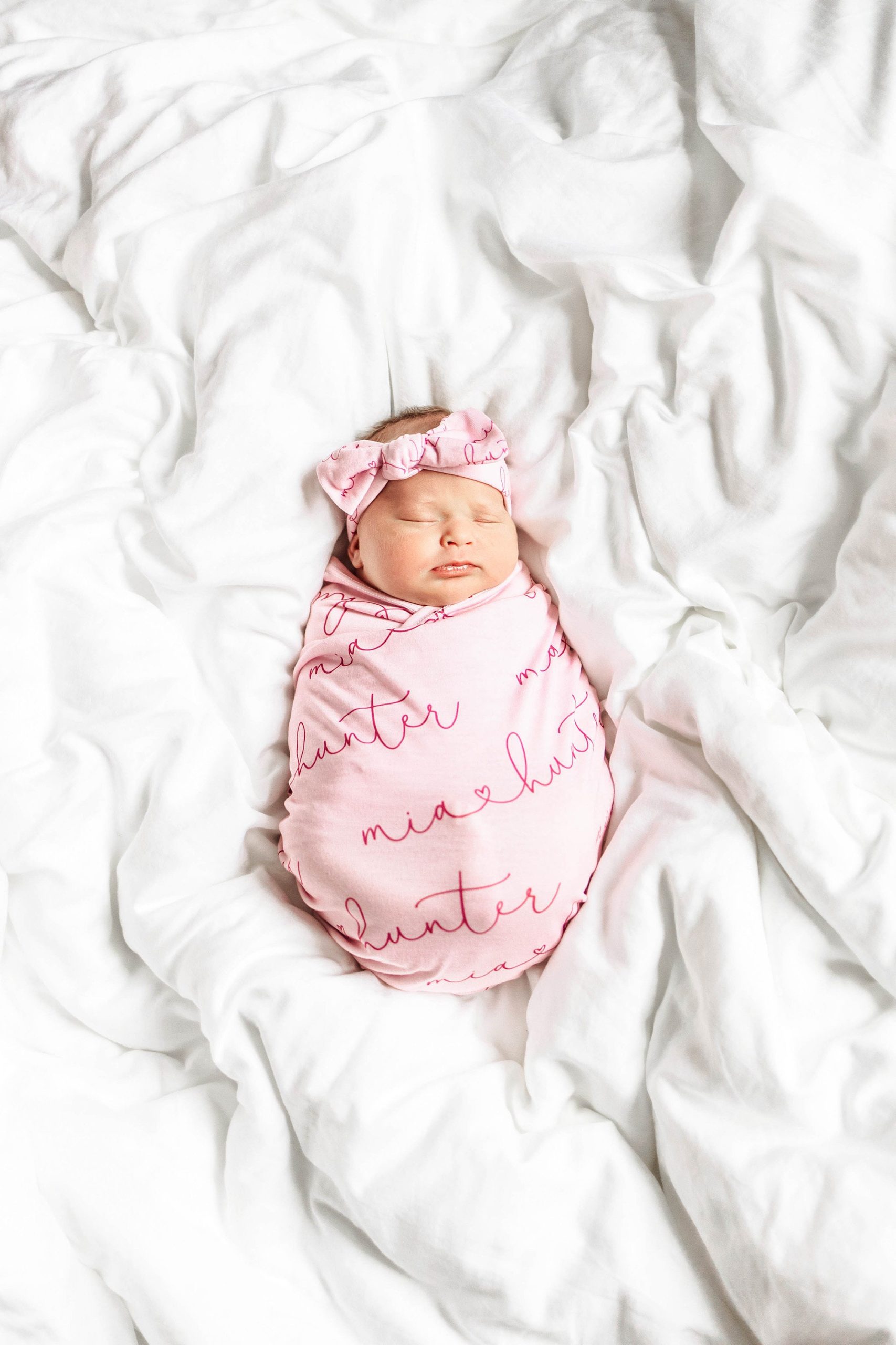 Personalize a sweet swaddle + head accessory set to bring your precious little one home from the hospital. Use this versatile keepsake for swaddling, tummy time, as a nursing cover or to simply catch that oh so sweet baby drool!
