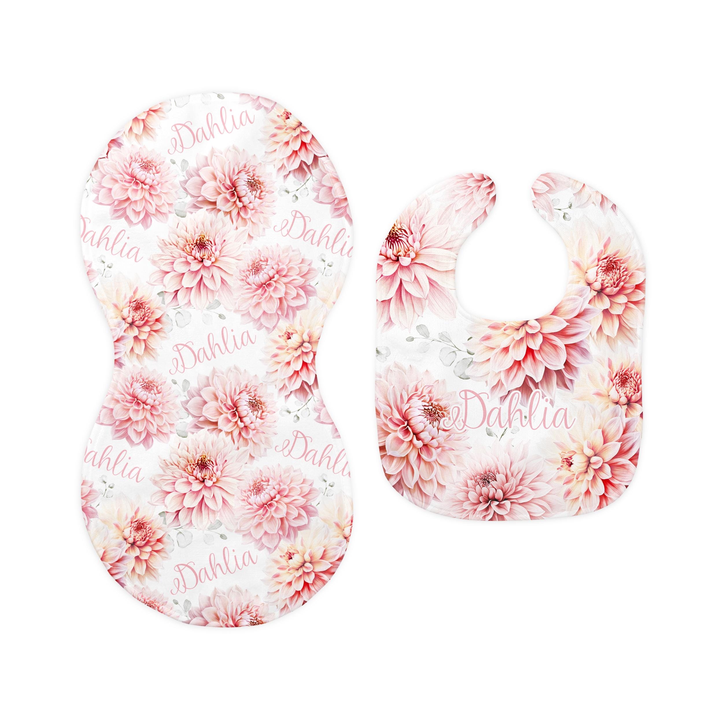 Personalized Pink Dahlia Floral Baby Girl Accessories, Blanket, Nursery Sheets and Decor, Girly Pink Flowers, Newborn Shower New Mom Gift