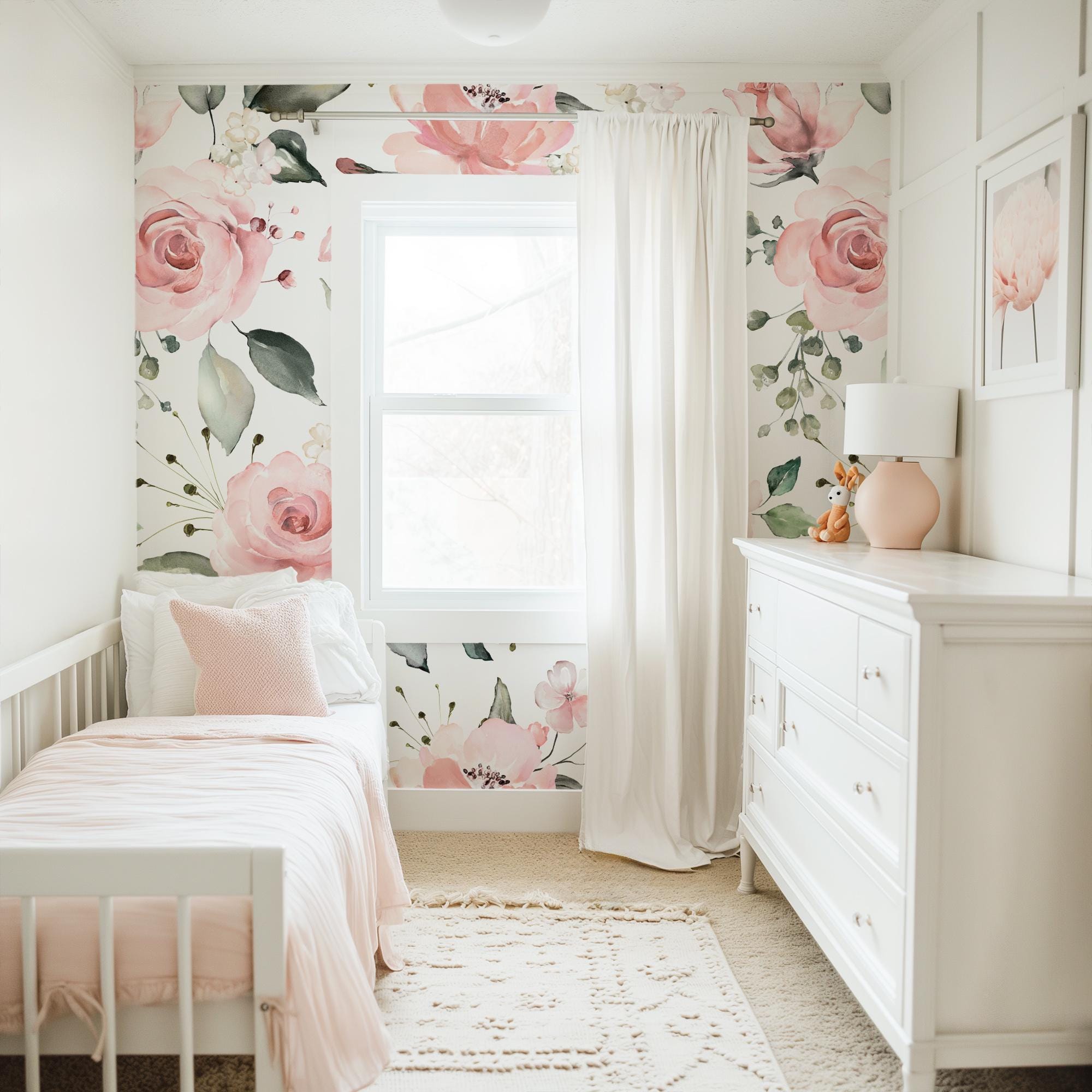 Add soft floral romance to your space with this pink and peach rose wallpaper 🌸 Featuring hand-painted blooms in gentle pastel tones, this peel-and-stick mural brings elegance and femininity to nurseries, bedrooms, or vintage-inspired interiors.