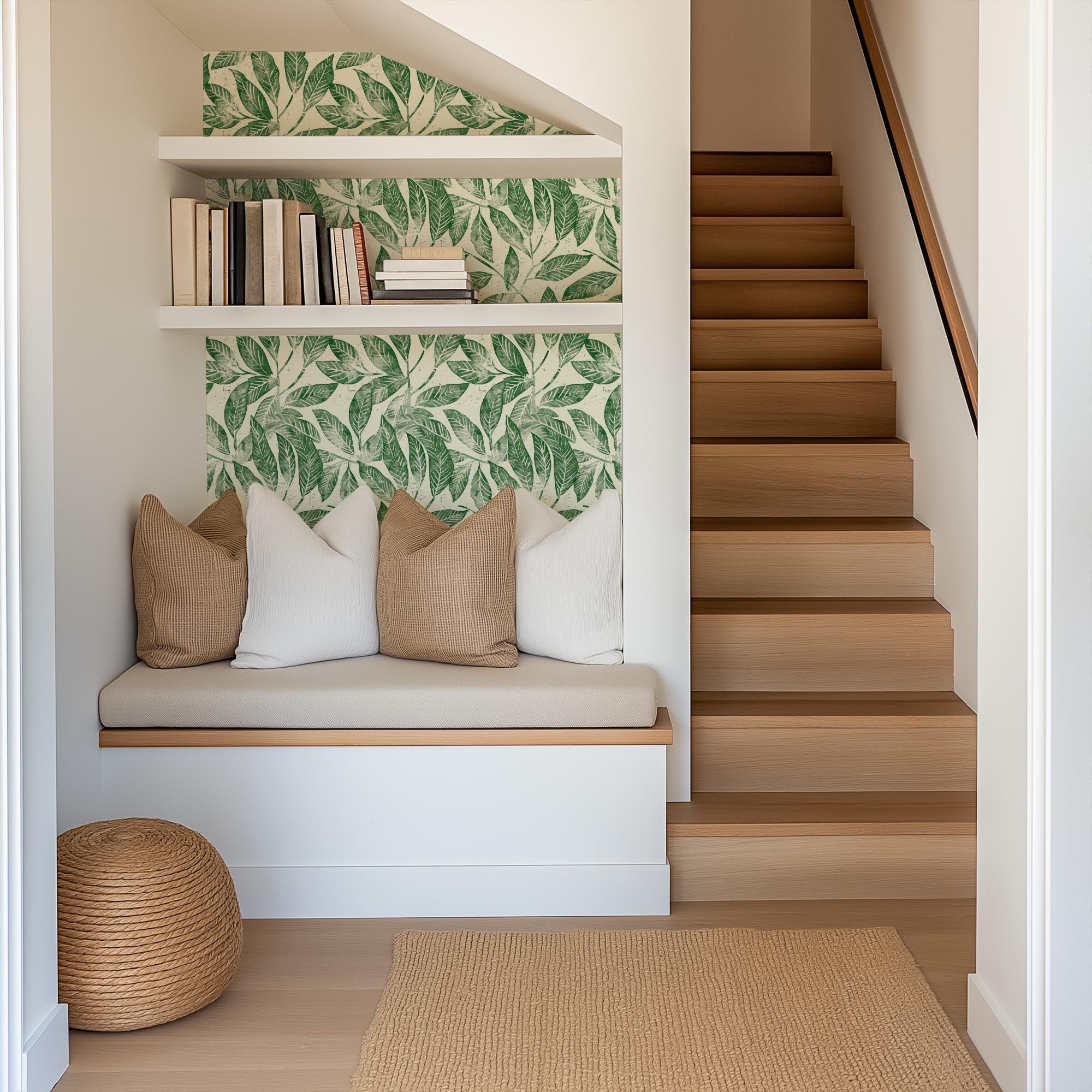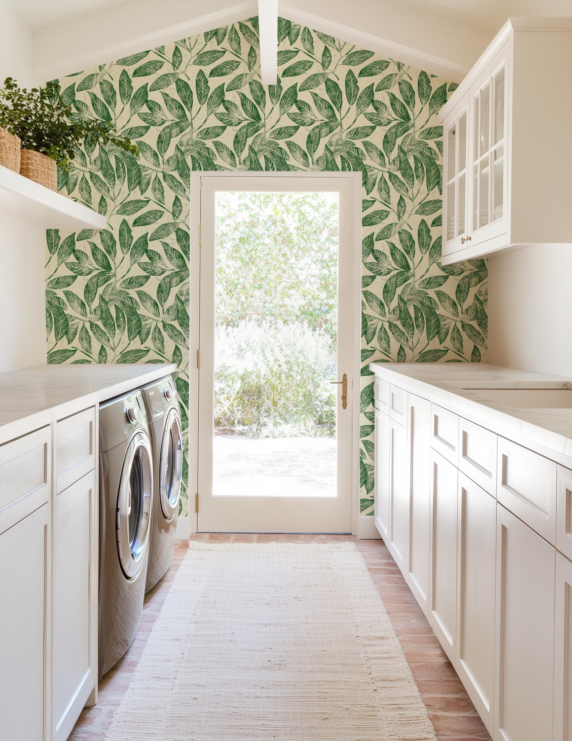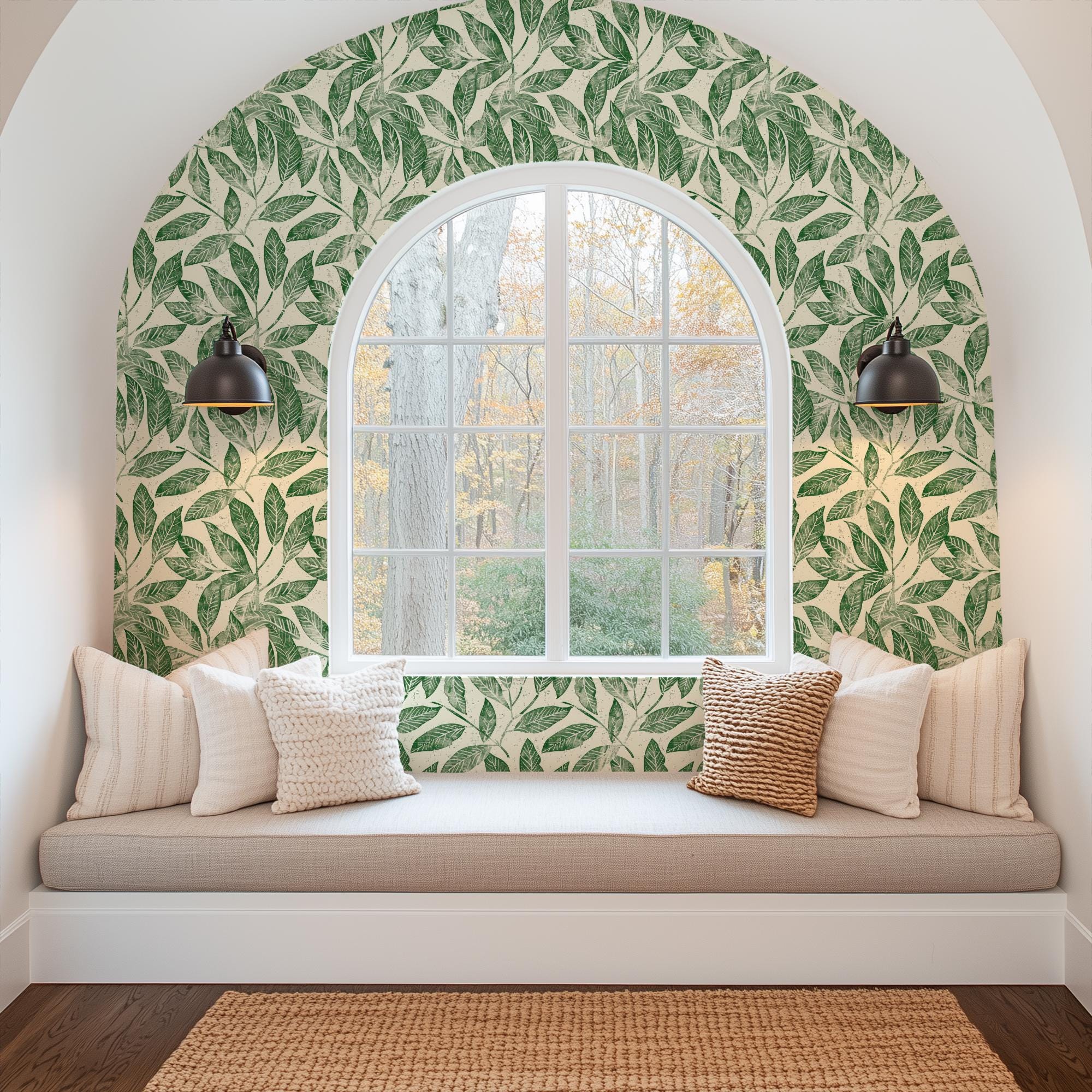 Pressed Leaf Wallpaper, Greenery Plant Garden, Peel Stick Prepasted Traditional, Custom Dimensions Sage Botanical Green Pothos Leaves
