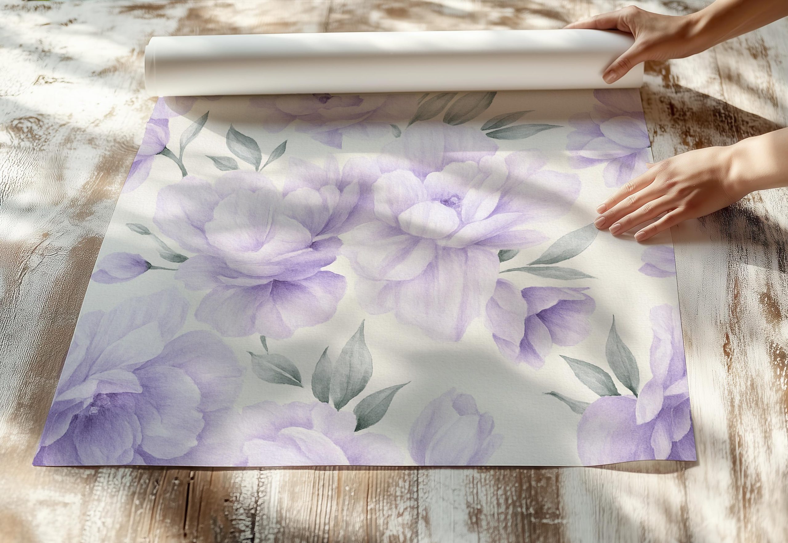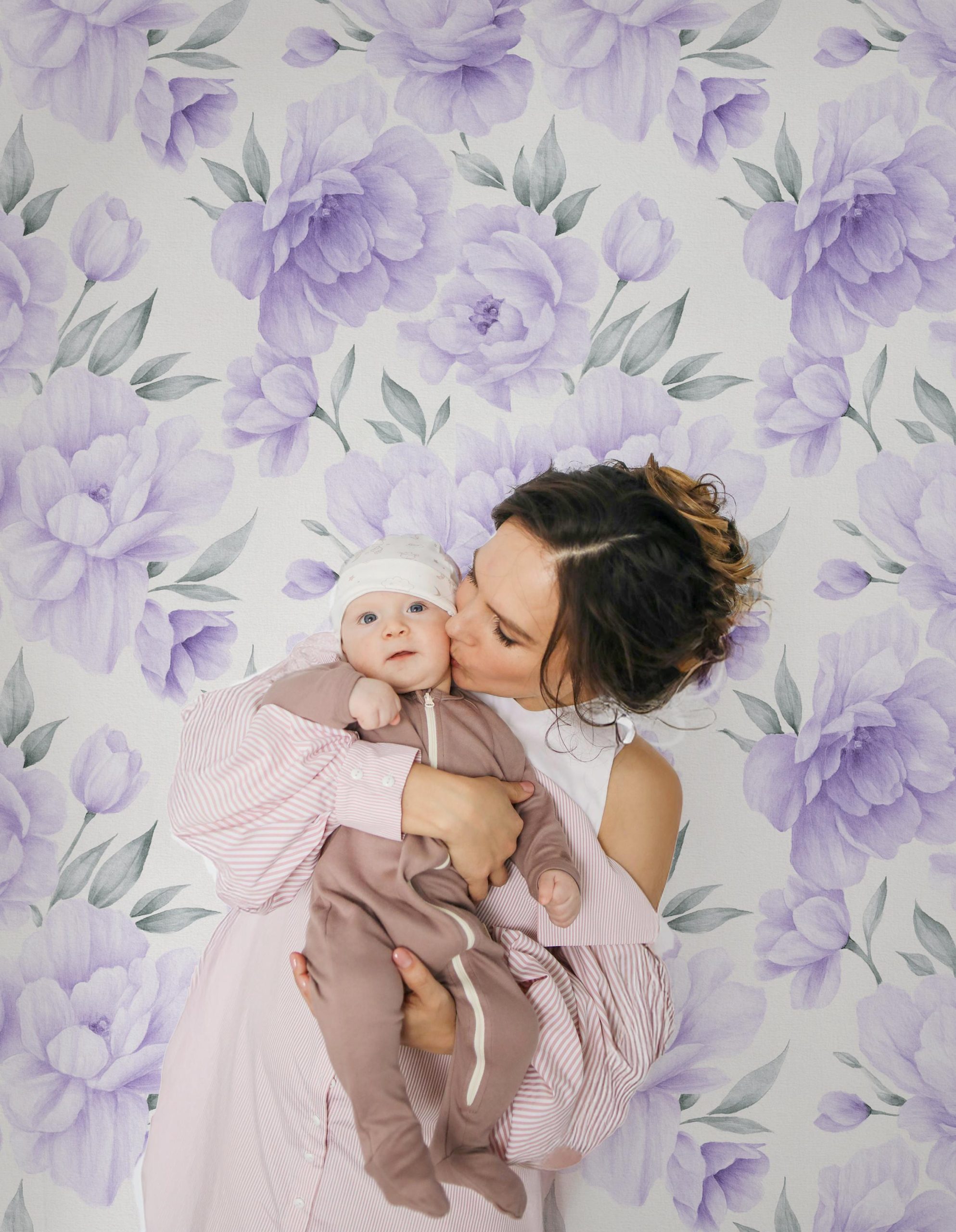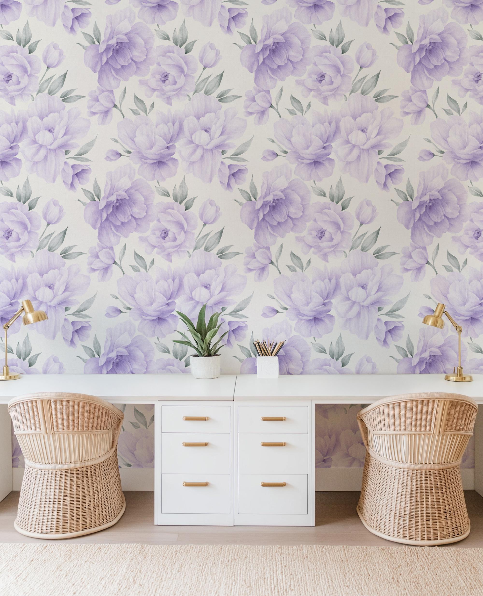 Purple Peonies Floral Wallpaper, Large Scale Peel and Stick Removable, Unpasted Prepasted Traditional Option, Lavender Girl Nursery Mural