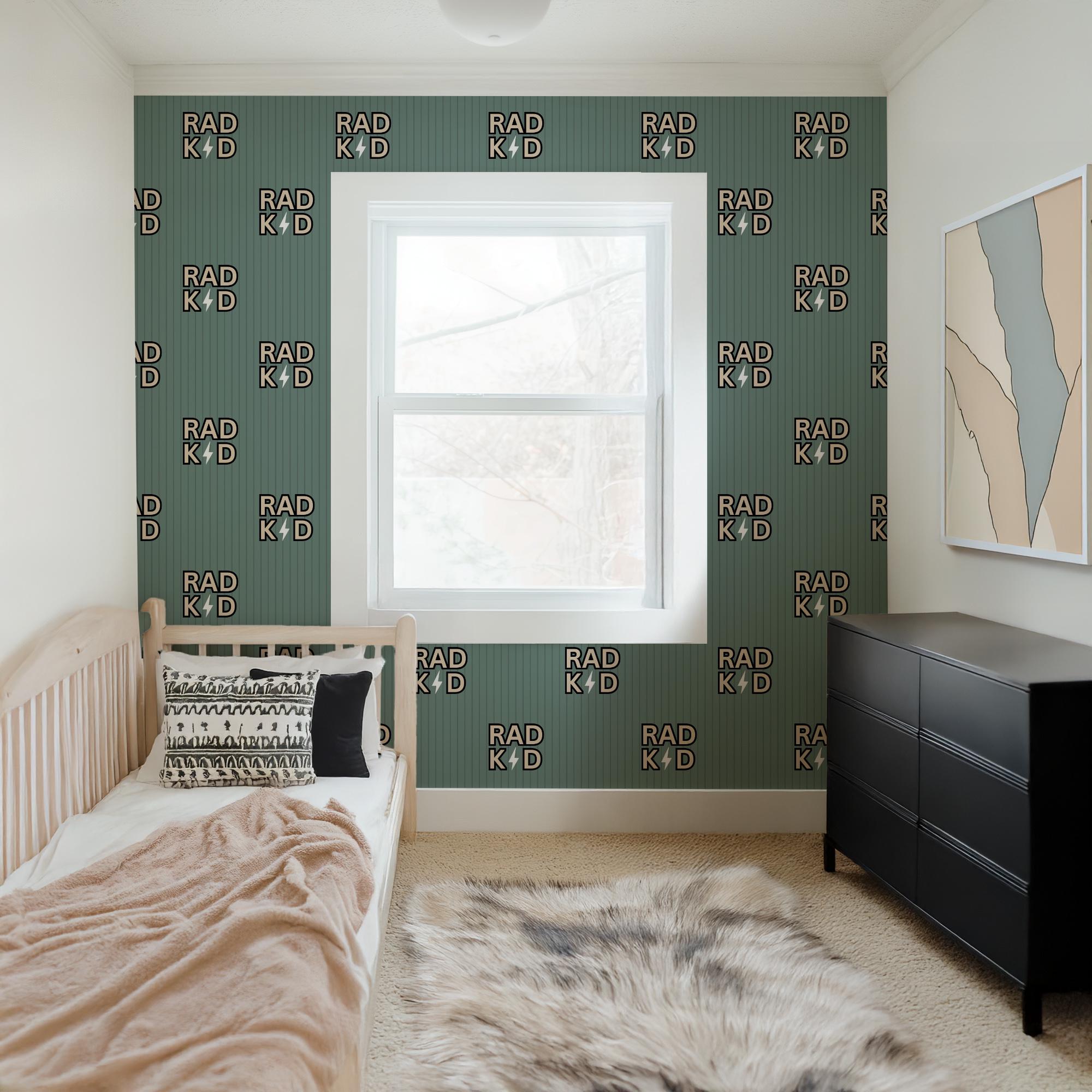 Rad Kid Wallpaper, Blue Green 70s Retro Grunge, Lightning Bolt Thunder Peel Stick, Retro Rad Cool Kid Boys Room, Skater Skateboard Cool Kid