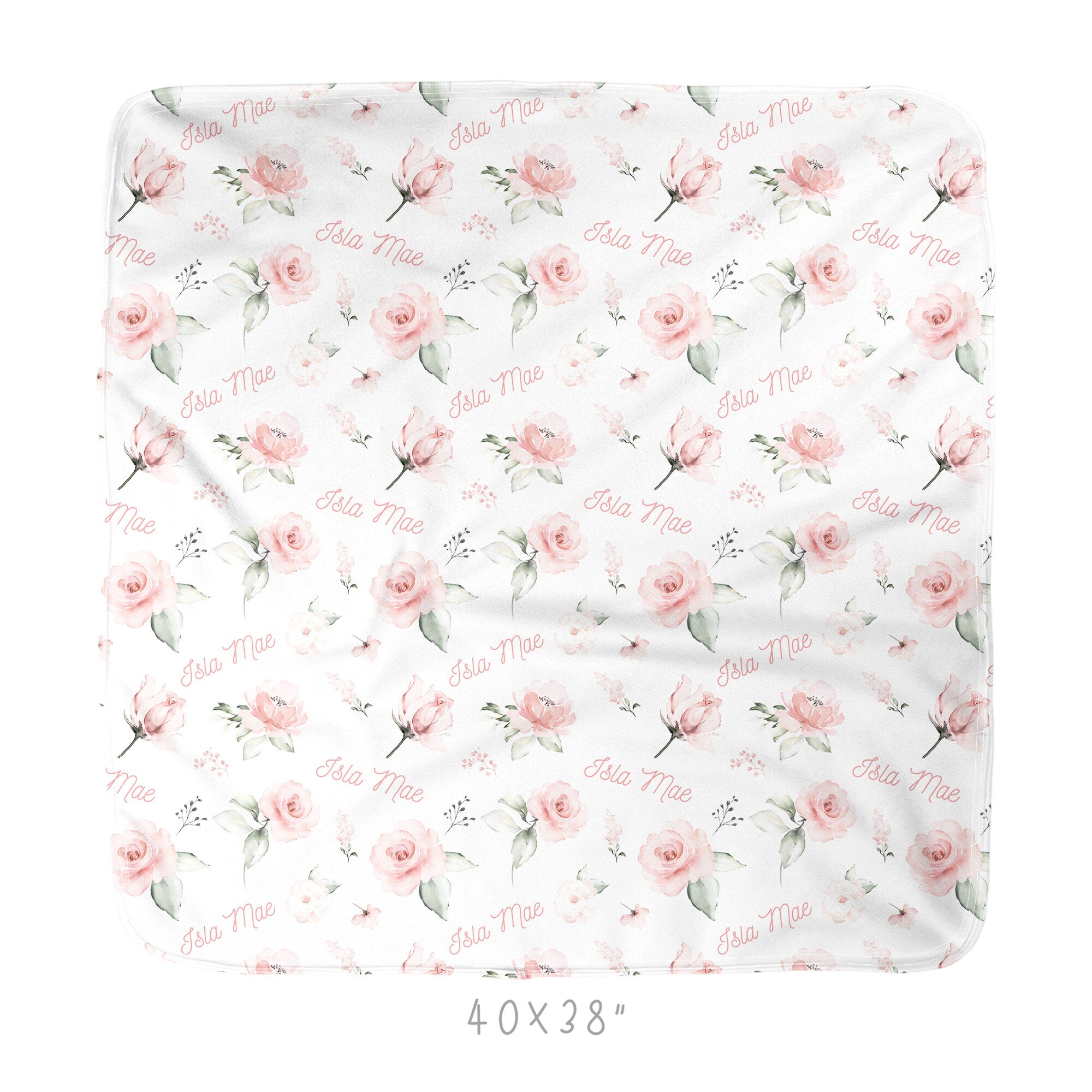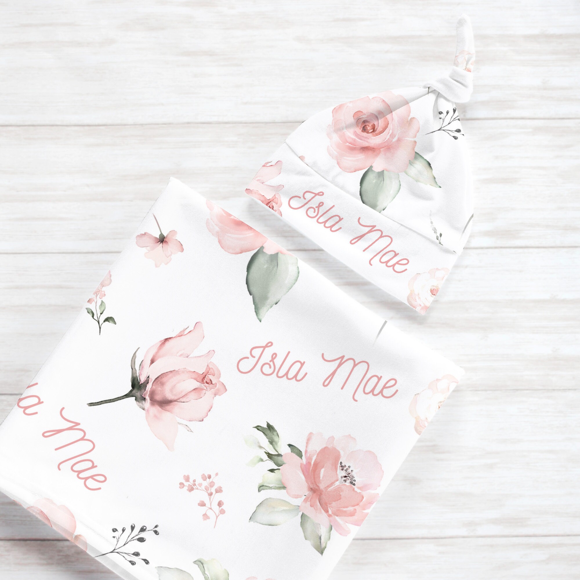 Romantic Boho Floral Swaddle Blanket Headband Hat Set / Personalized Baby Shower Gift / Hospital Newborn Photos Prop / Custom Name Printed