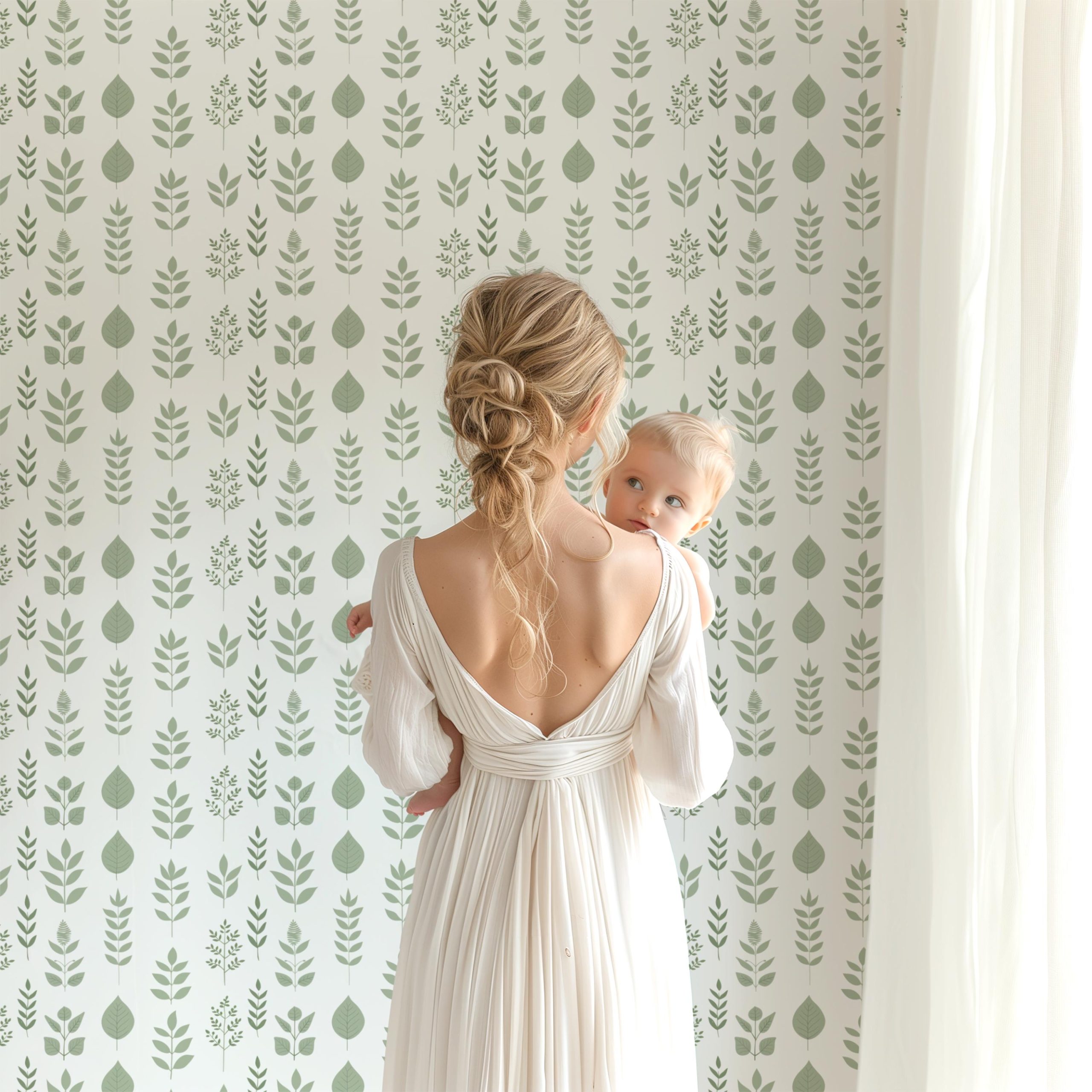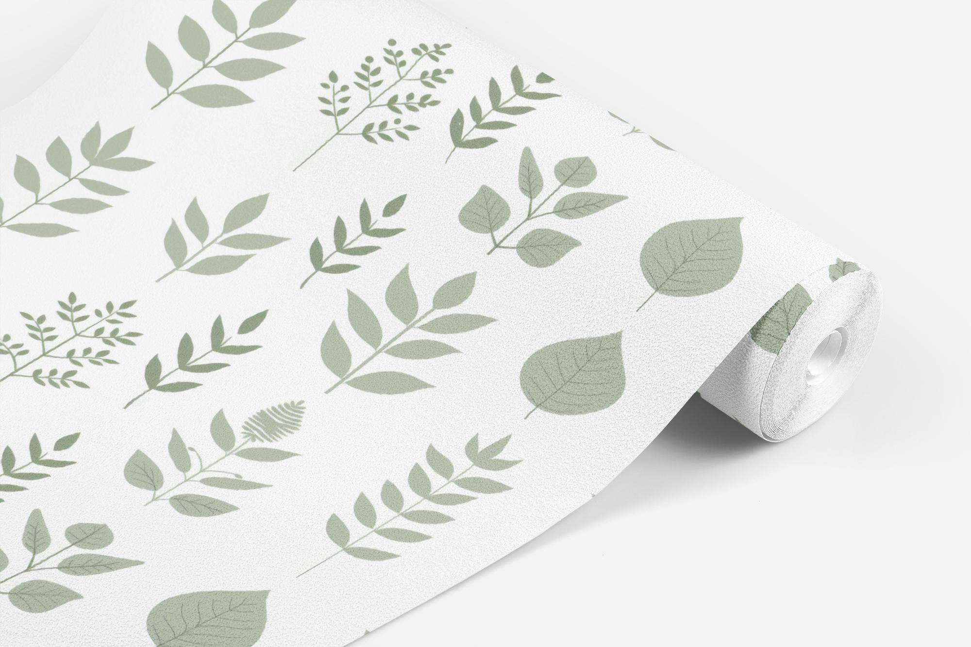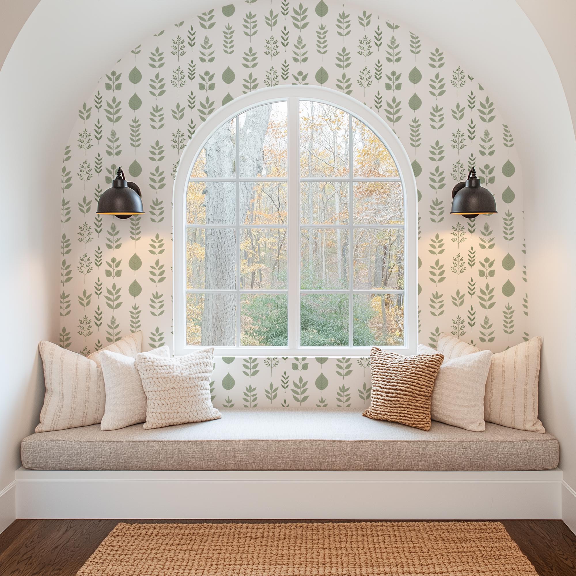 Sage Green and White Botanical Wallpaper, Fern Greenery Plant Garden, Peel Stick Prepasted Traditional, Custom Sizes Pressed Botanical