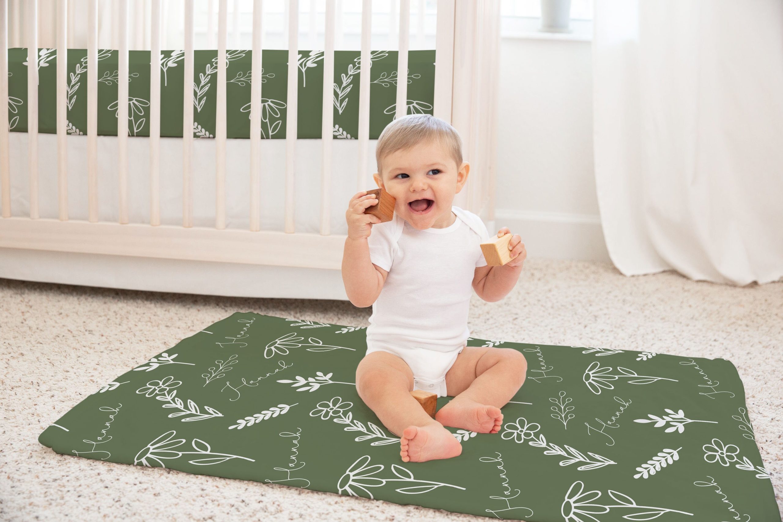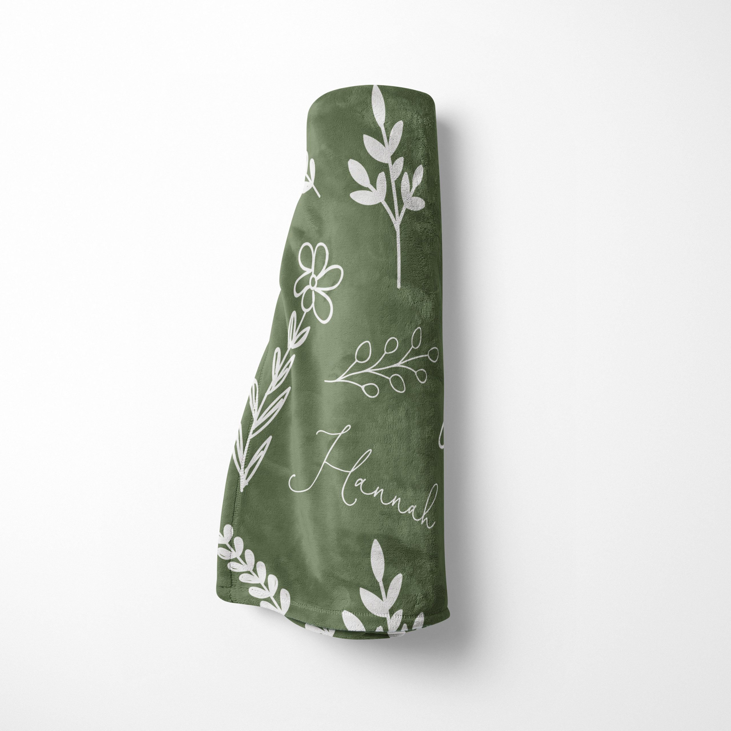 Sage Green Doodle Flowers Personalized Girl Blanket / Baby Gift / Hospital Newborn Photos / Keepsake Blanket / Hannah Collection