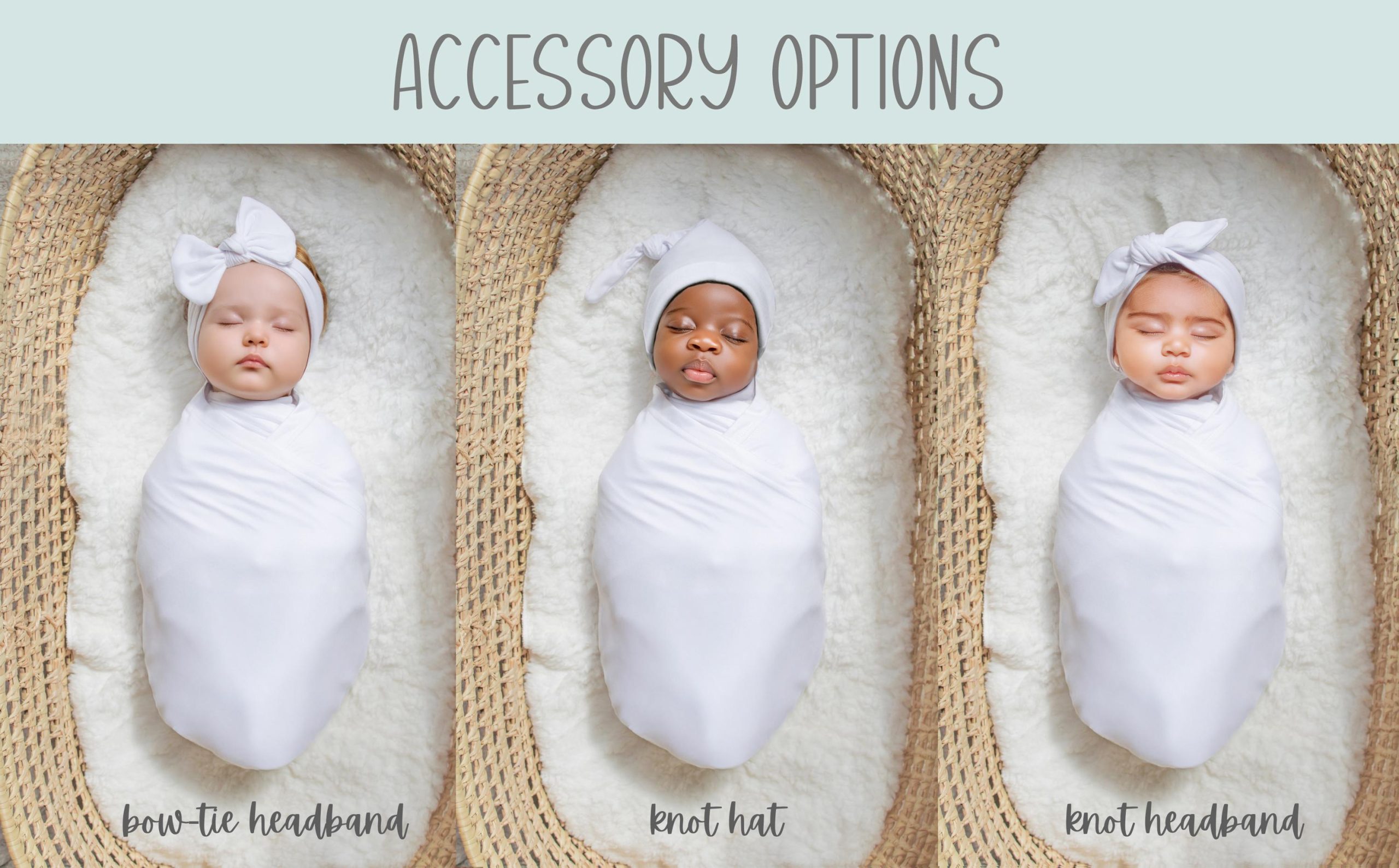 Knotted hats and headbands are made with the same jersey fabric as our swaddles. These are made to fit sweet newborn heads with an approximate head circumference of 12-13 inches. Two headband options: bow-tie style or knotted style.