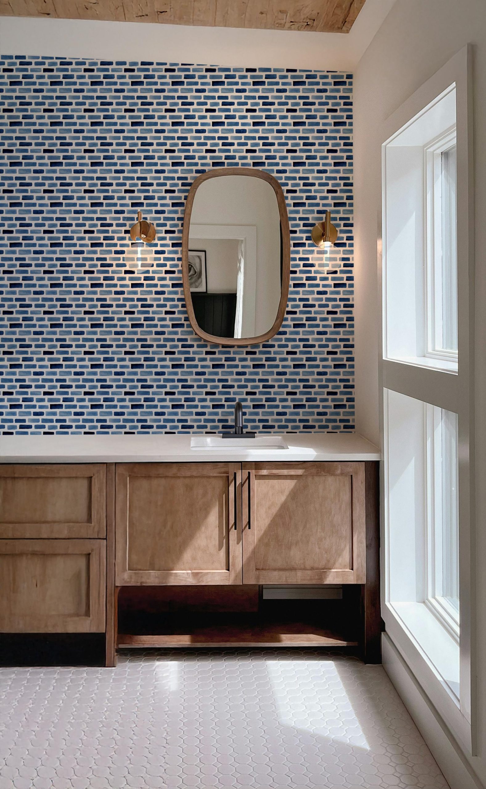 Watercolor Blue Tile Wallpaper, Beach Coastal Nautical Vibes, Peel and Stick Removable, Prepasted Traditional, Bathroom Kitchen Update