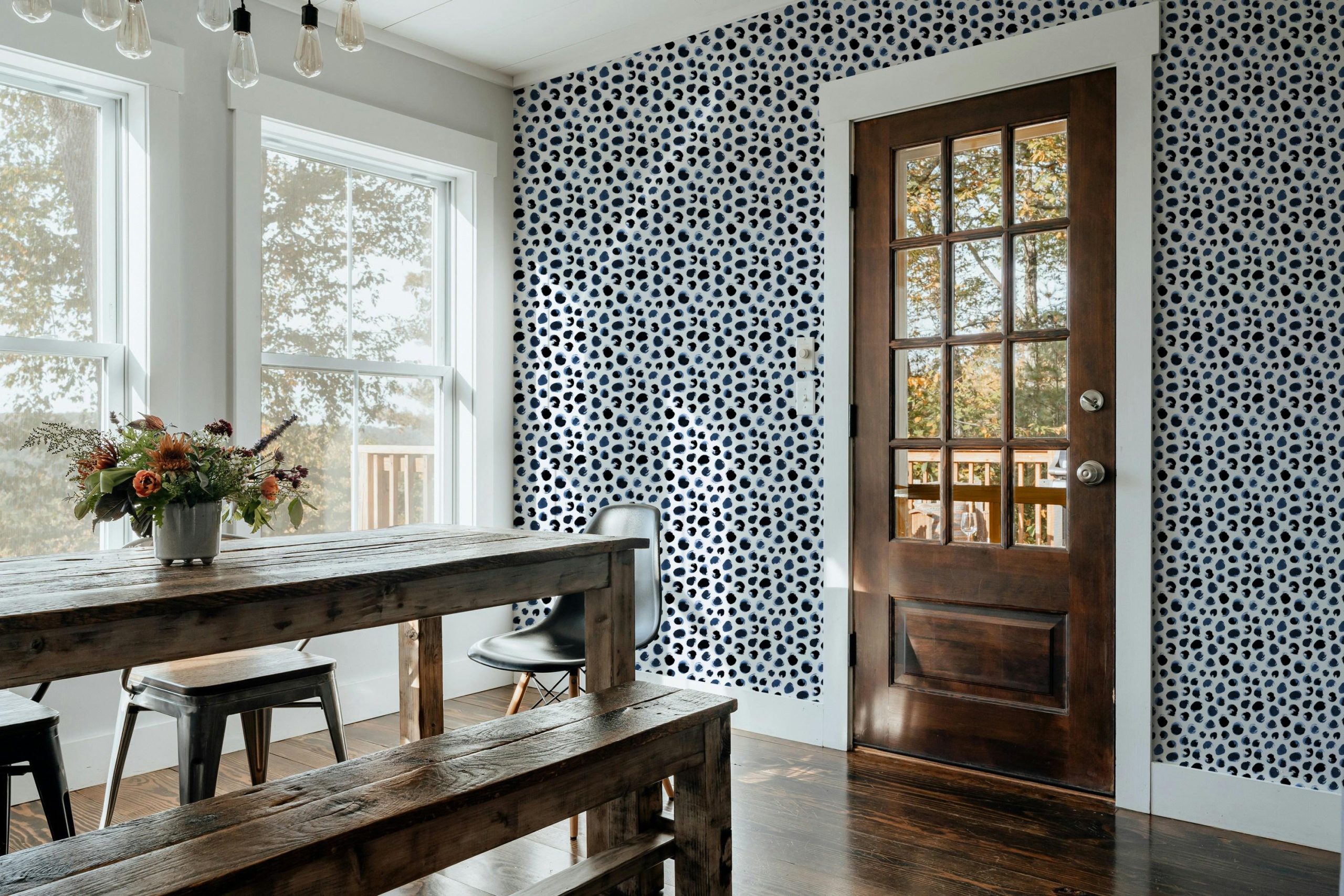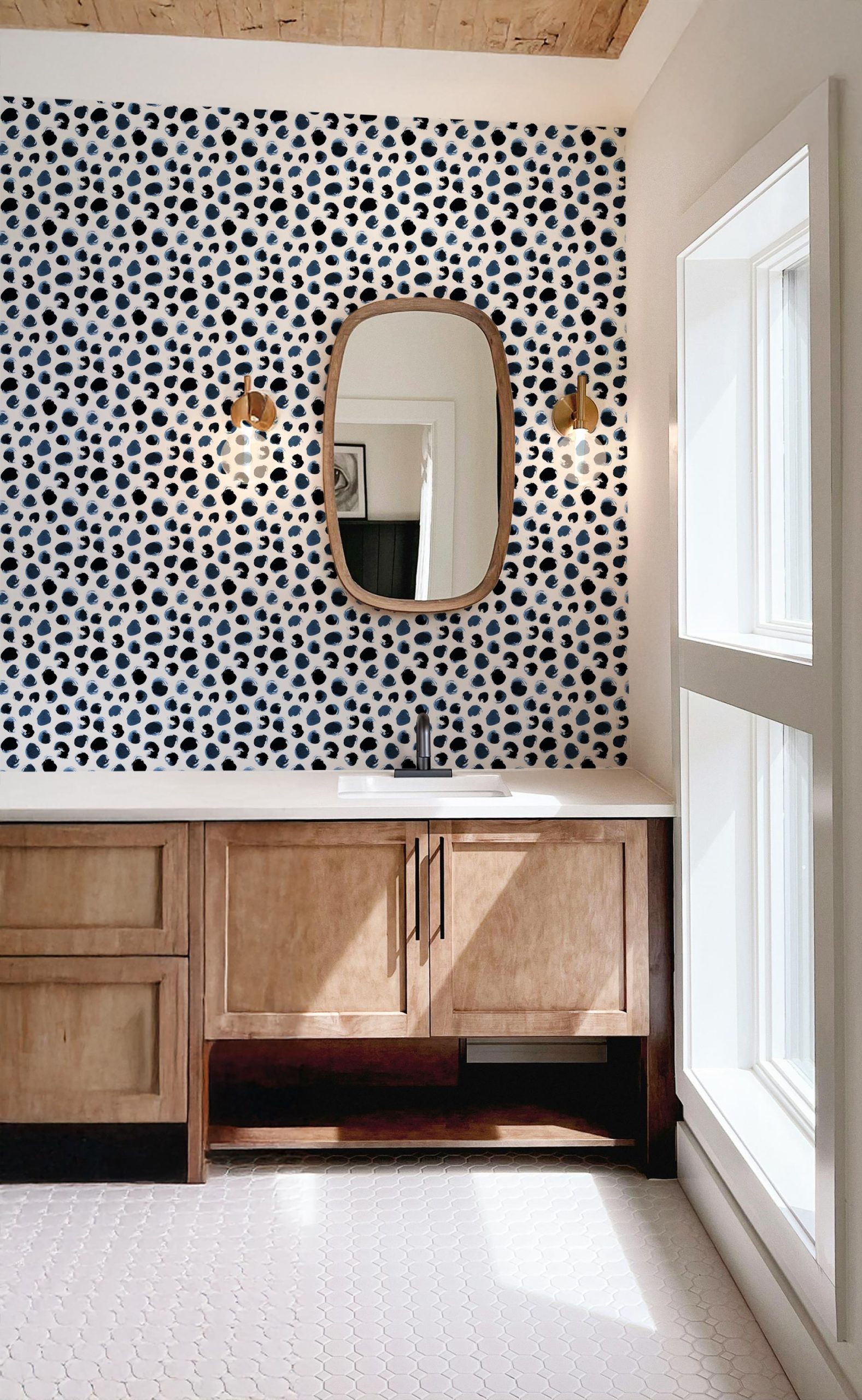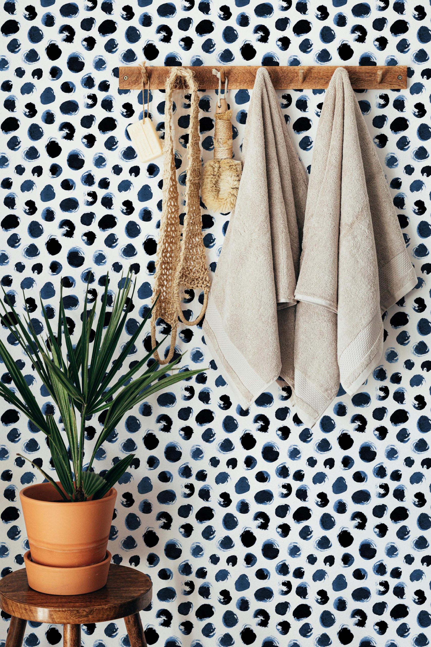 Watercolor Navy Blue Black Dots Wallpaper, Peel and Stick Removable, Prepasted Traditional, Bathroom, Laundry, Kitchen, Entry, Playroom