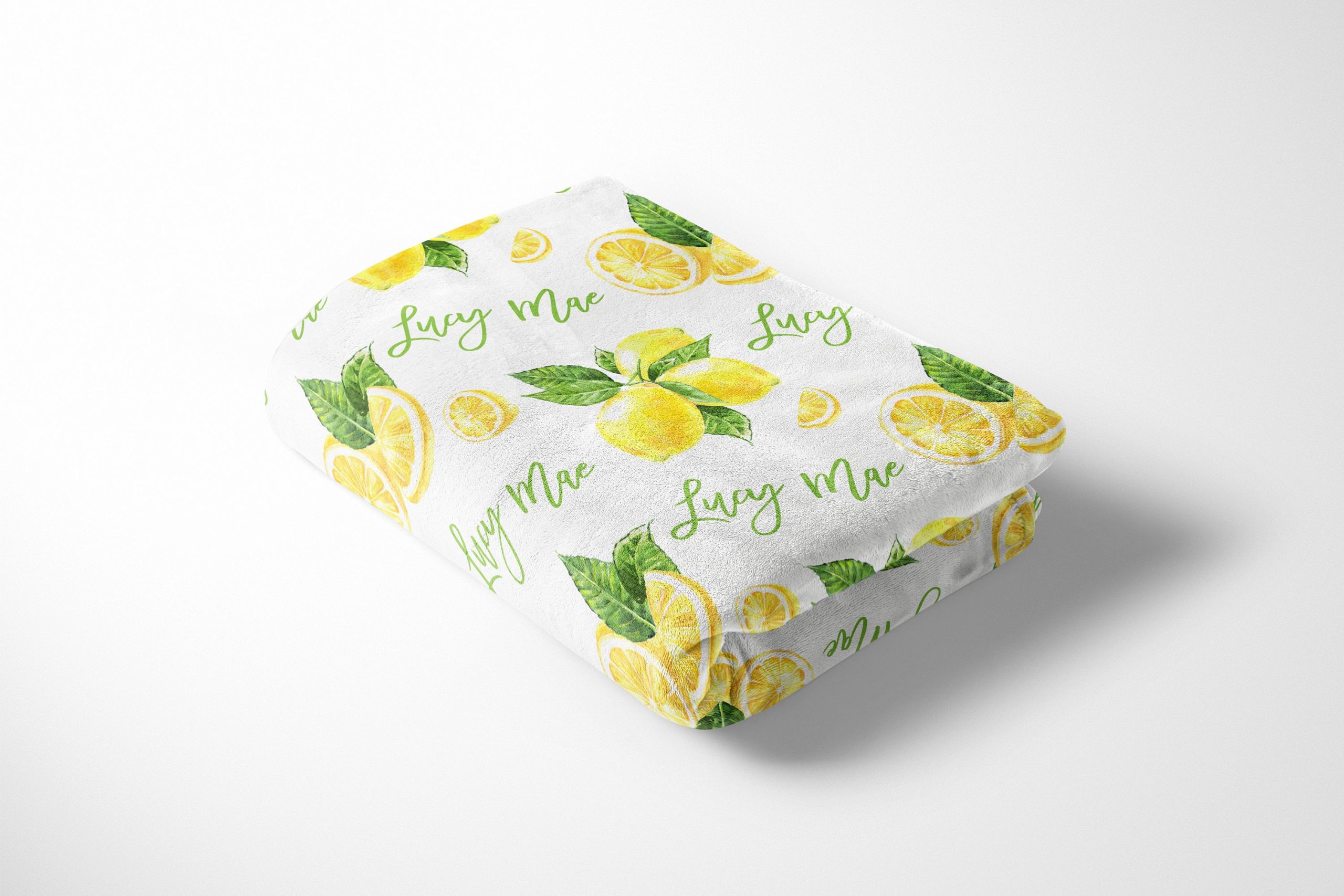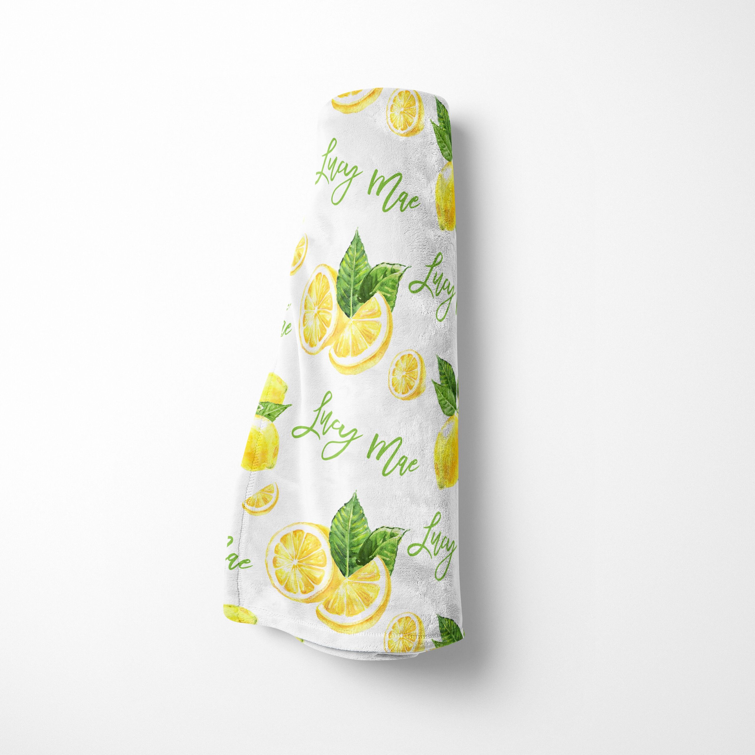 Yellow Lemon Blanket, Personalized Girls Baby Shower Gift, Hospital Newborn Photos, Lulu Toddler Kid Soft Cuddly Minky Summer Fruit Lime